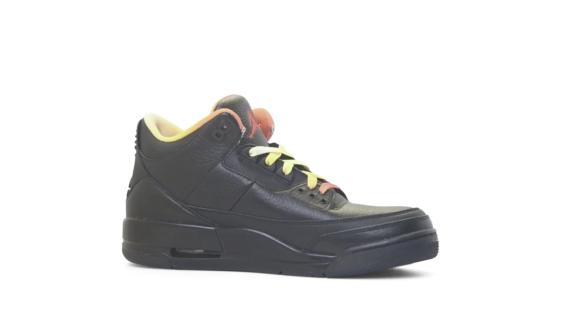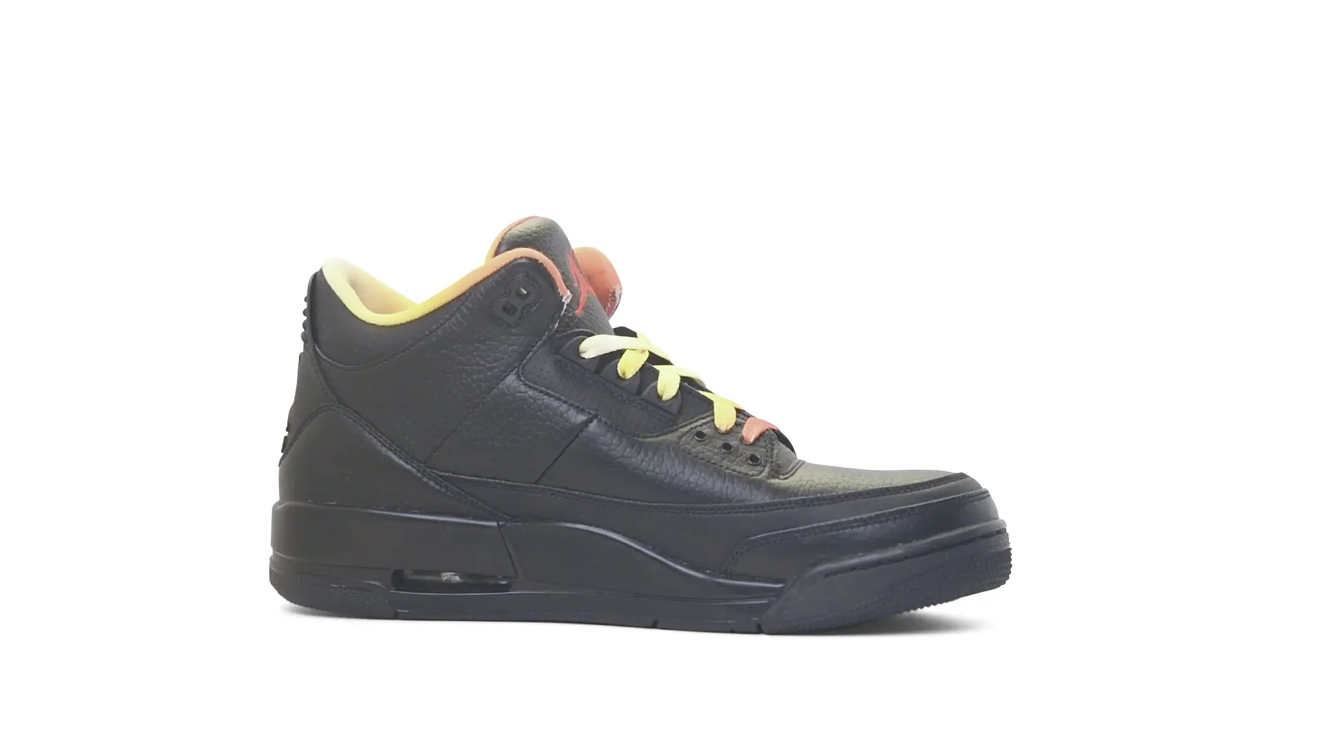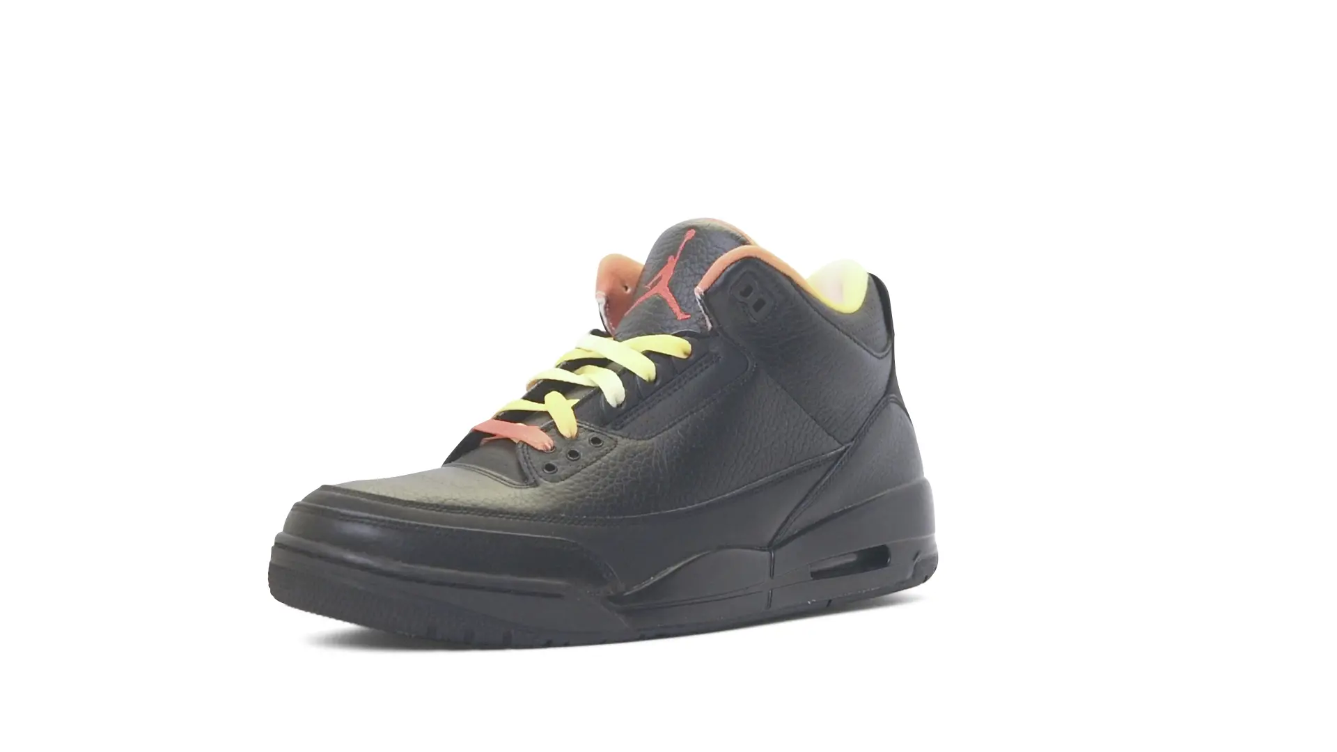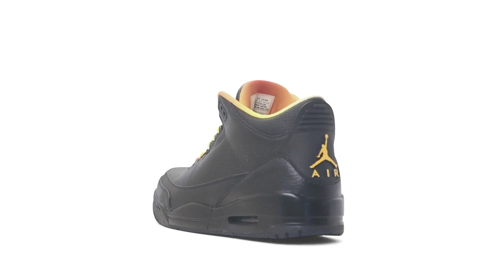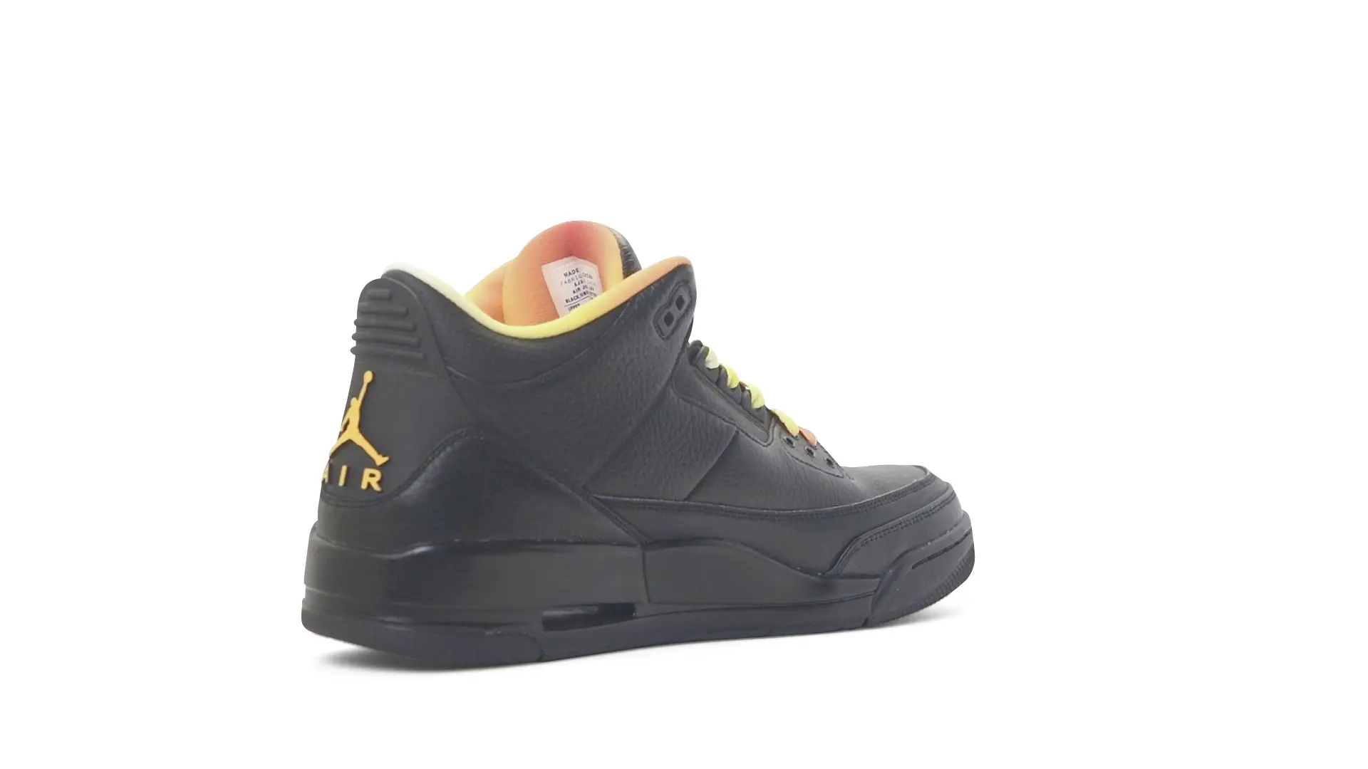 This Air Jordan 3 ‘ Drake vs Lil Wayne’ features a combination of tumbled and smooth black leather dominating the upper, accented by pops of orange and yellow on the laces and collar lining. Notably, the insole showcases a unique 'Drake vs. Lil Wayne' graphic, adding a personal touch to commemorate the tour and their partnership.