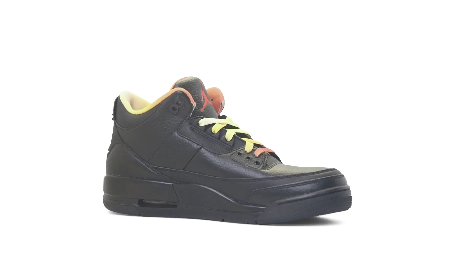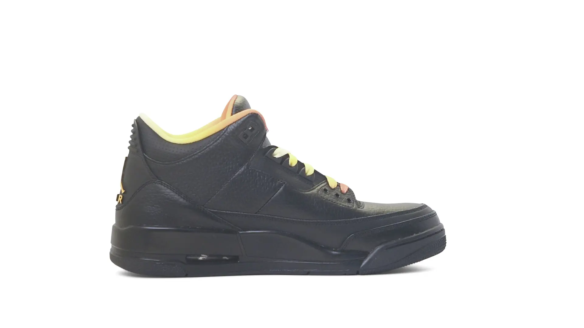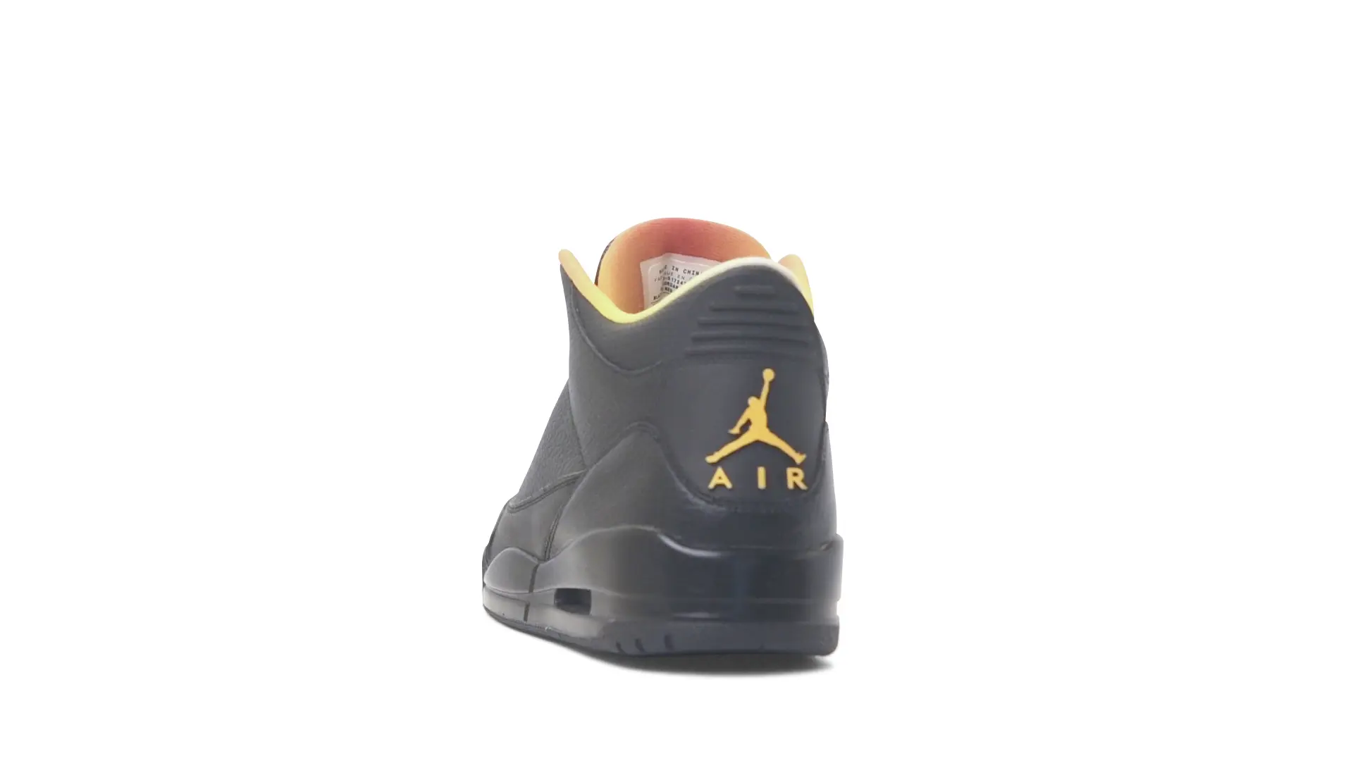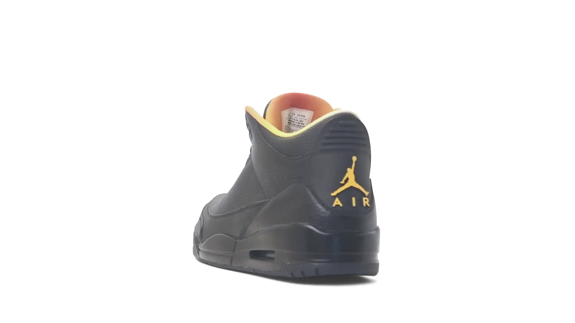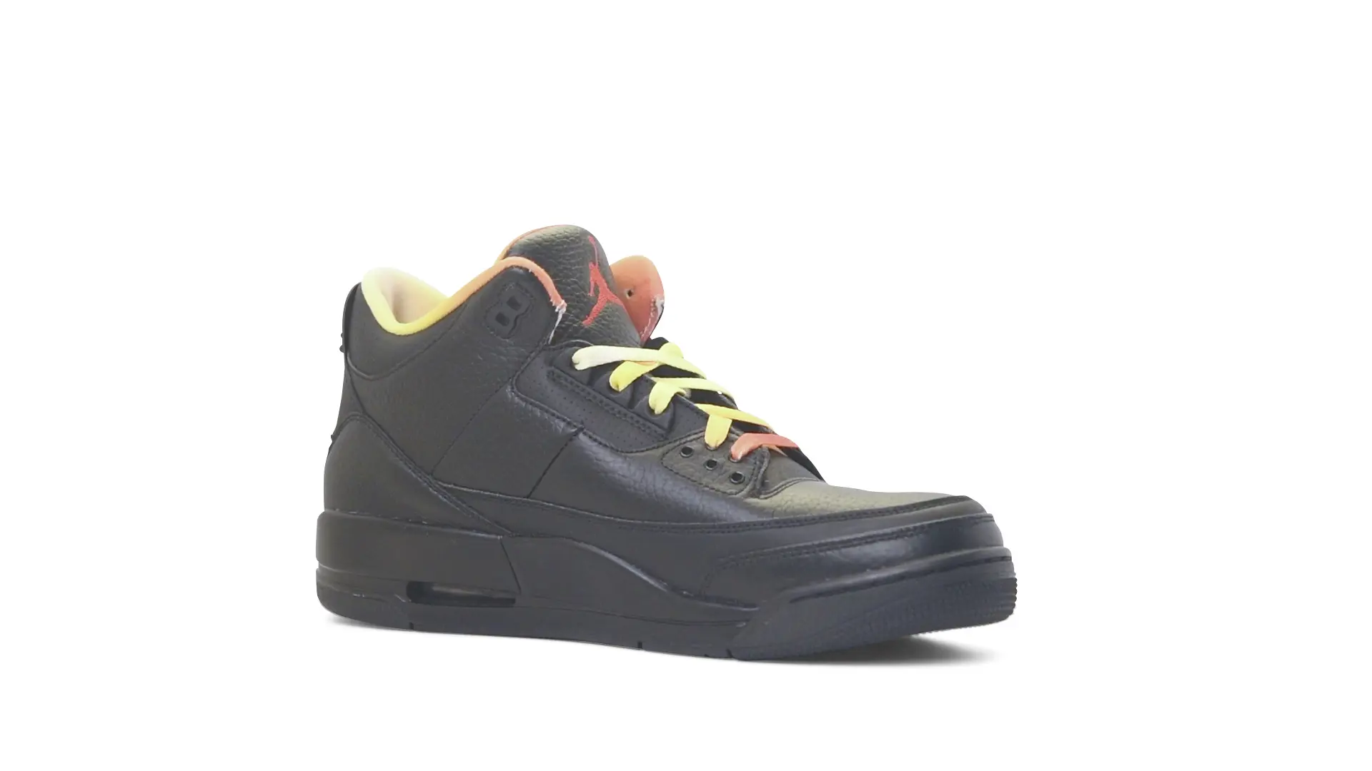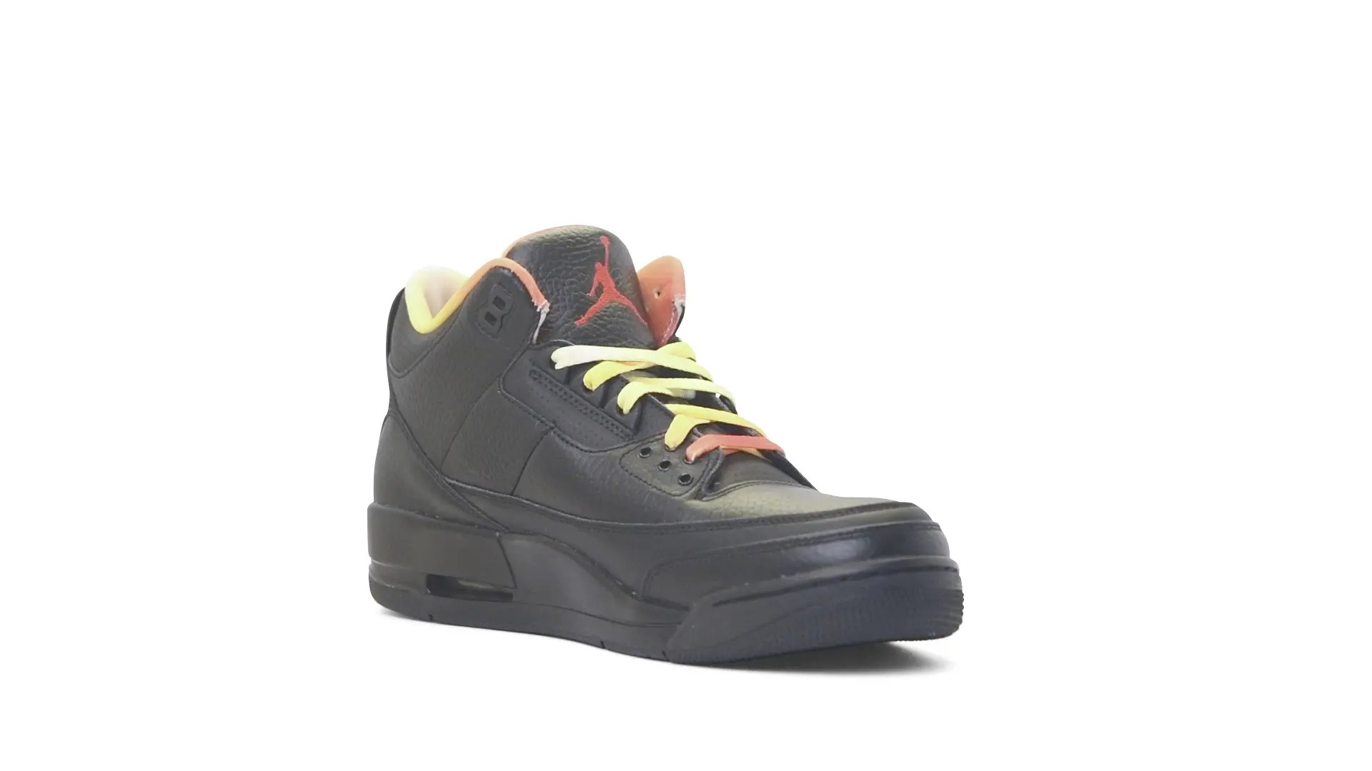 This Air Jordan 3 ‘ Drake vs Lil Wayne’ features a combination of tumbled and smooth black leather dominating the upper, accented by pops of orange and yellow on the laces and collar lining. Notably, the insole showcases a unique 'Drake vs. Lil Wayne' graphic, adding a personal touch to commemorate the tour and their partnership.