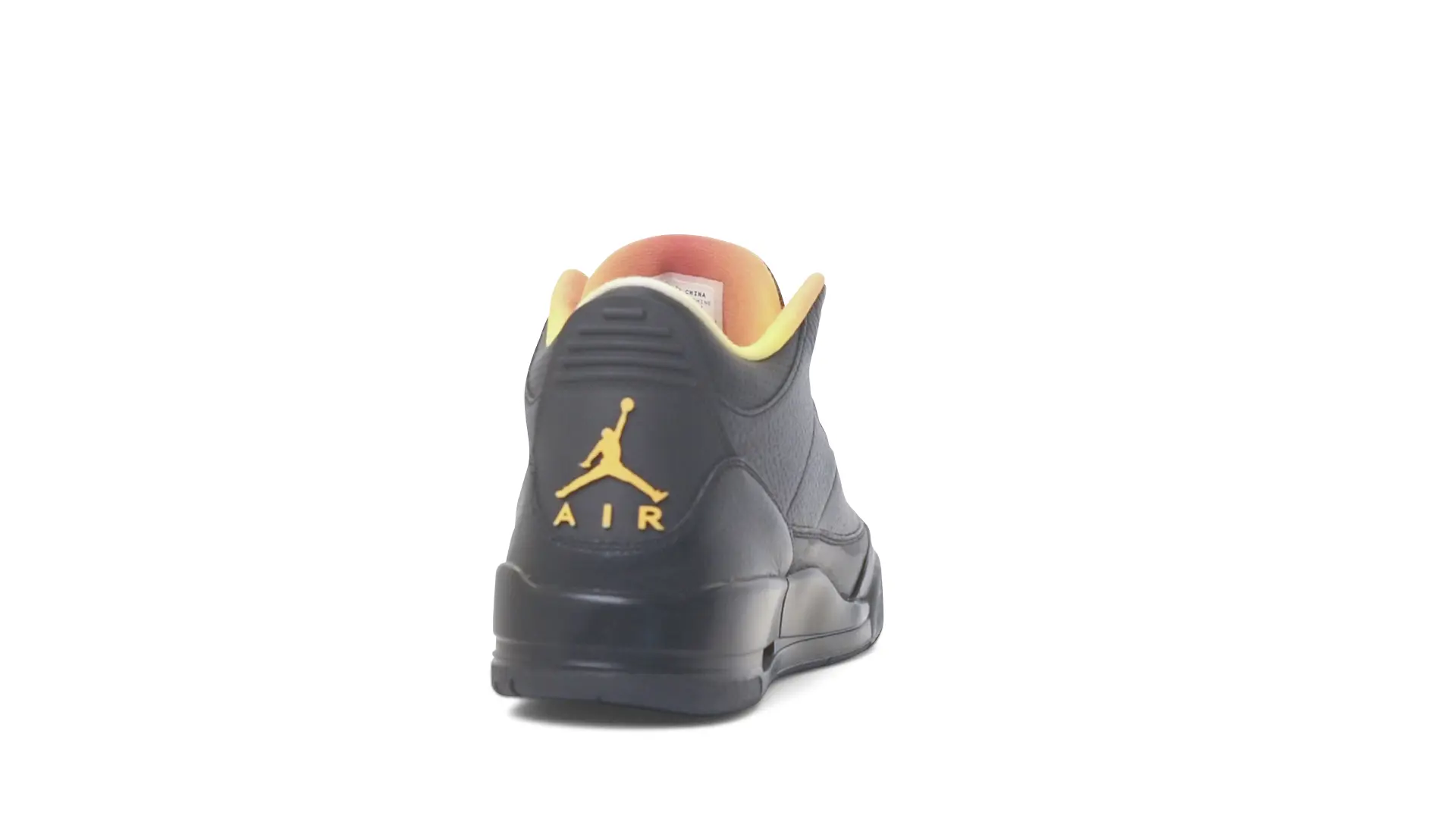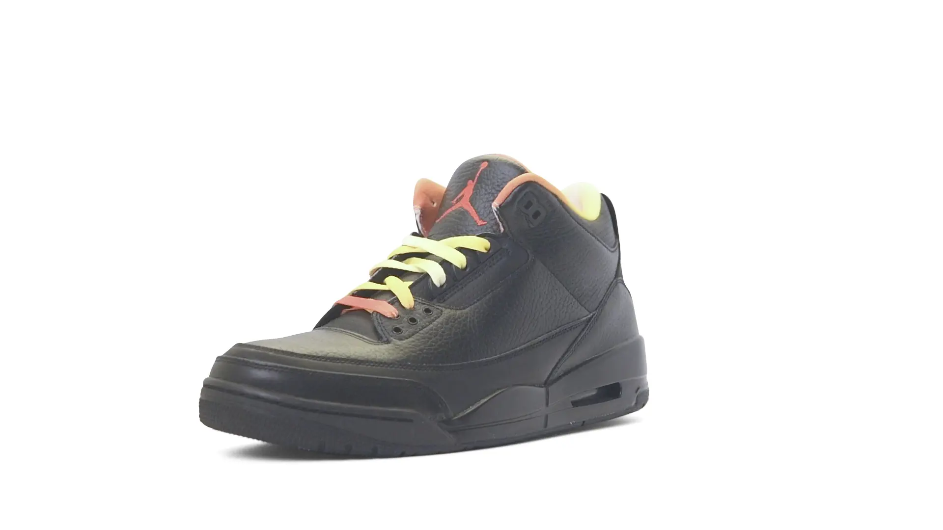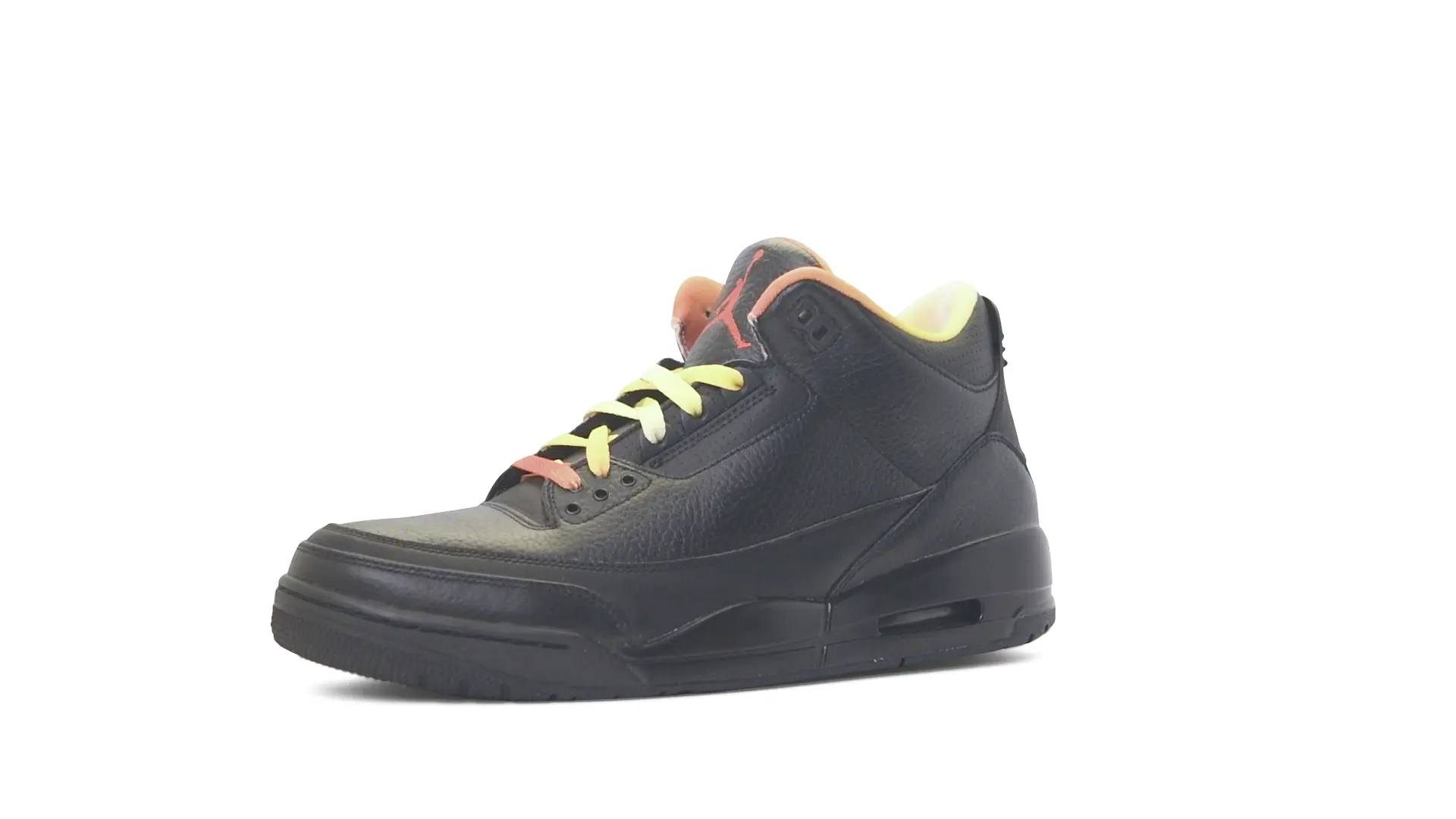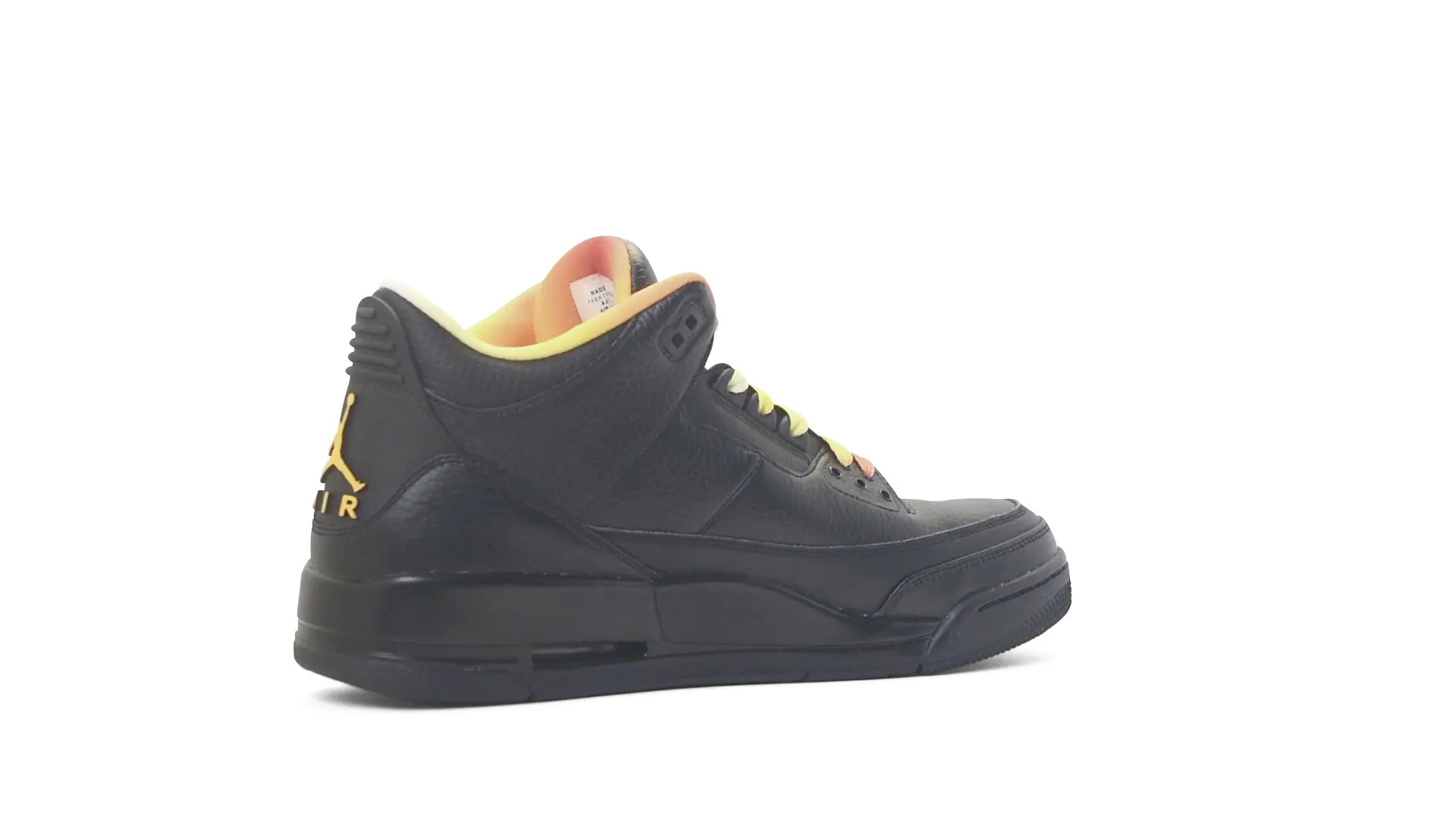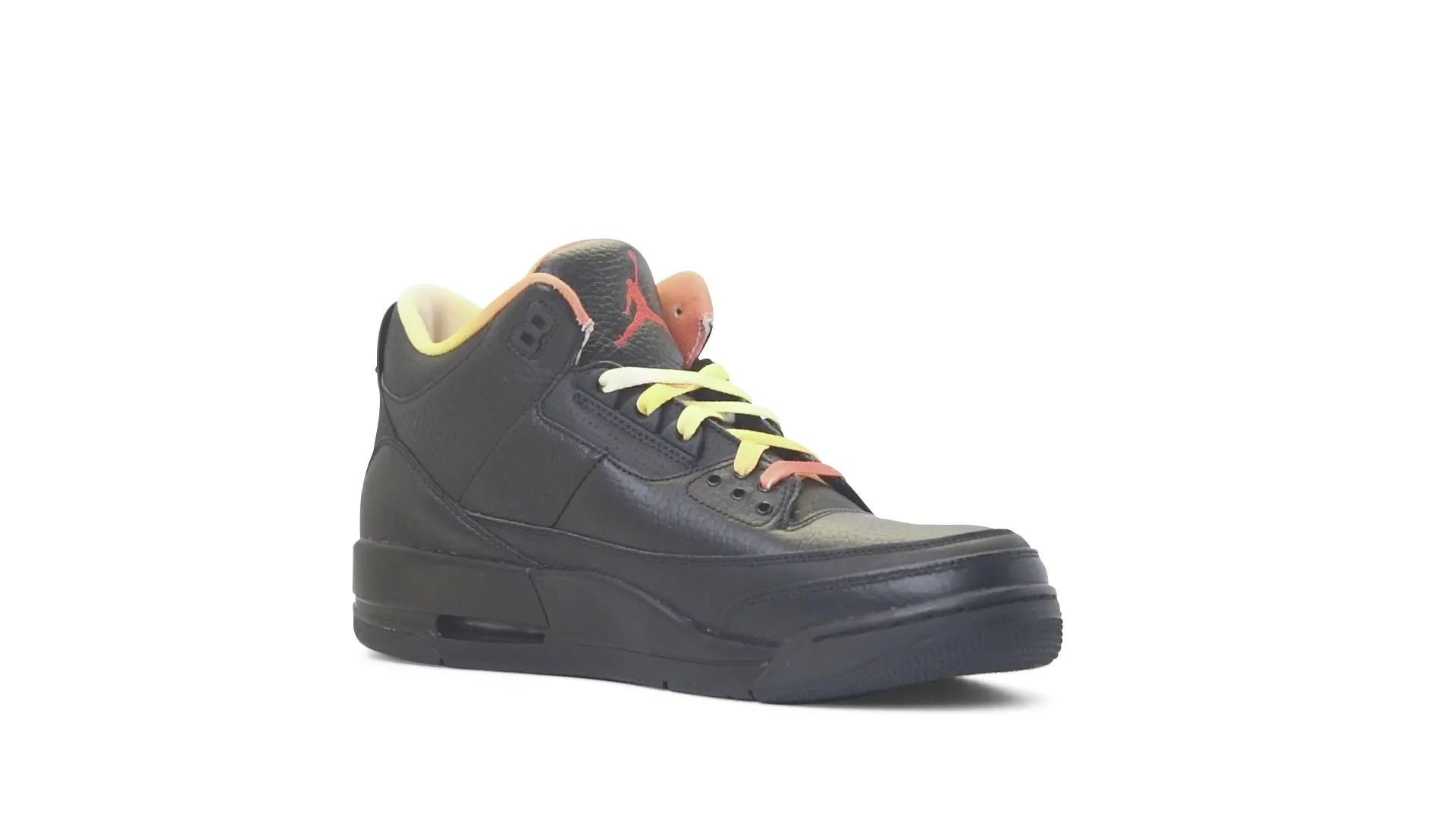 This Air Jordan 3 ‘ Drake vs Lil Wayne’ features a combination of tumbled and smooth black leather dominating the upper, accented by pops of orange and yellow on the laces and collar lining. Notably, the insole showcases a unique 'Drake vs. Lil Wayne' graphic, adding a personal touch to commemorate the tour and their partnership.