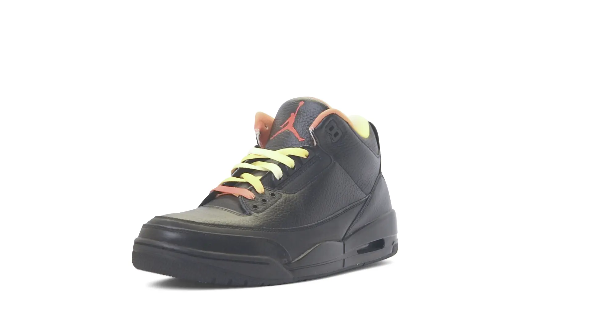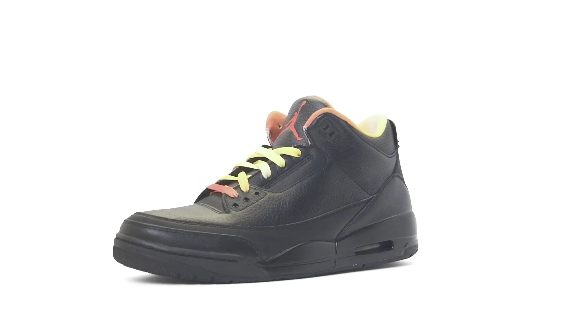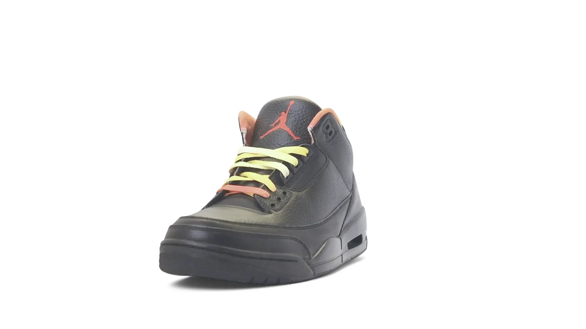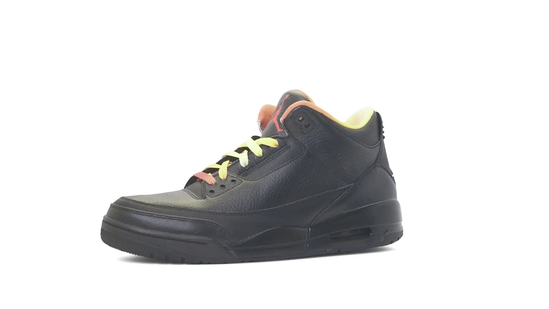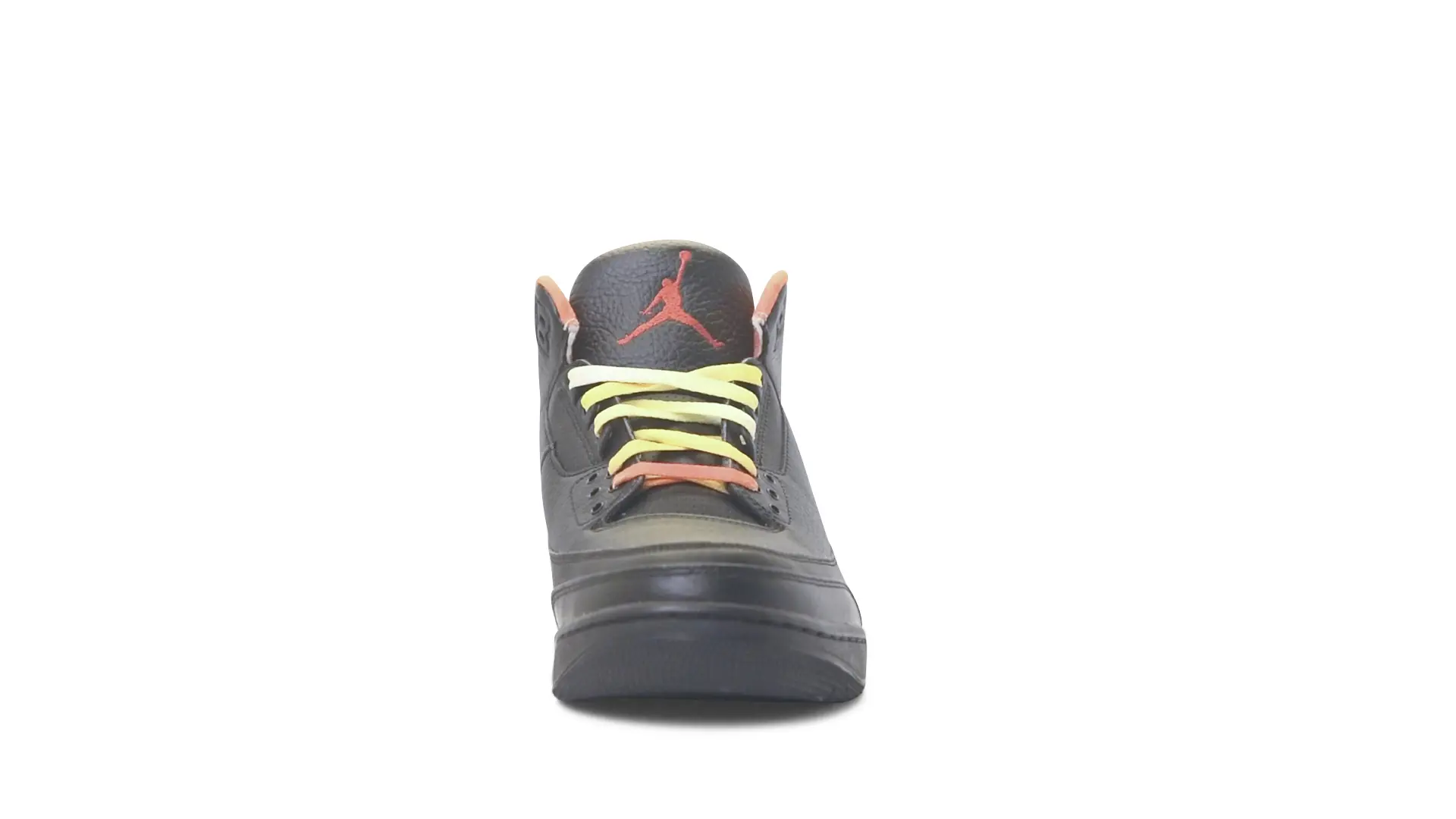 This Air Jordan 3 ‘ Drake vs Lil Wayne’ features a combination of tumbled and smooth black leather dominating the upper, accented by pops of orange and yellow on the laces and collar lining. Notably, the insole showcases a unique 'Drake vs. Lil Wayne' graphic, adding a personal touch to commemorate the tour and their partnership.