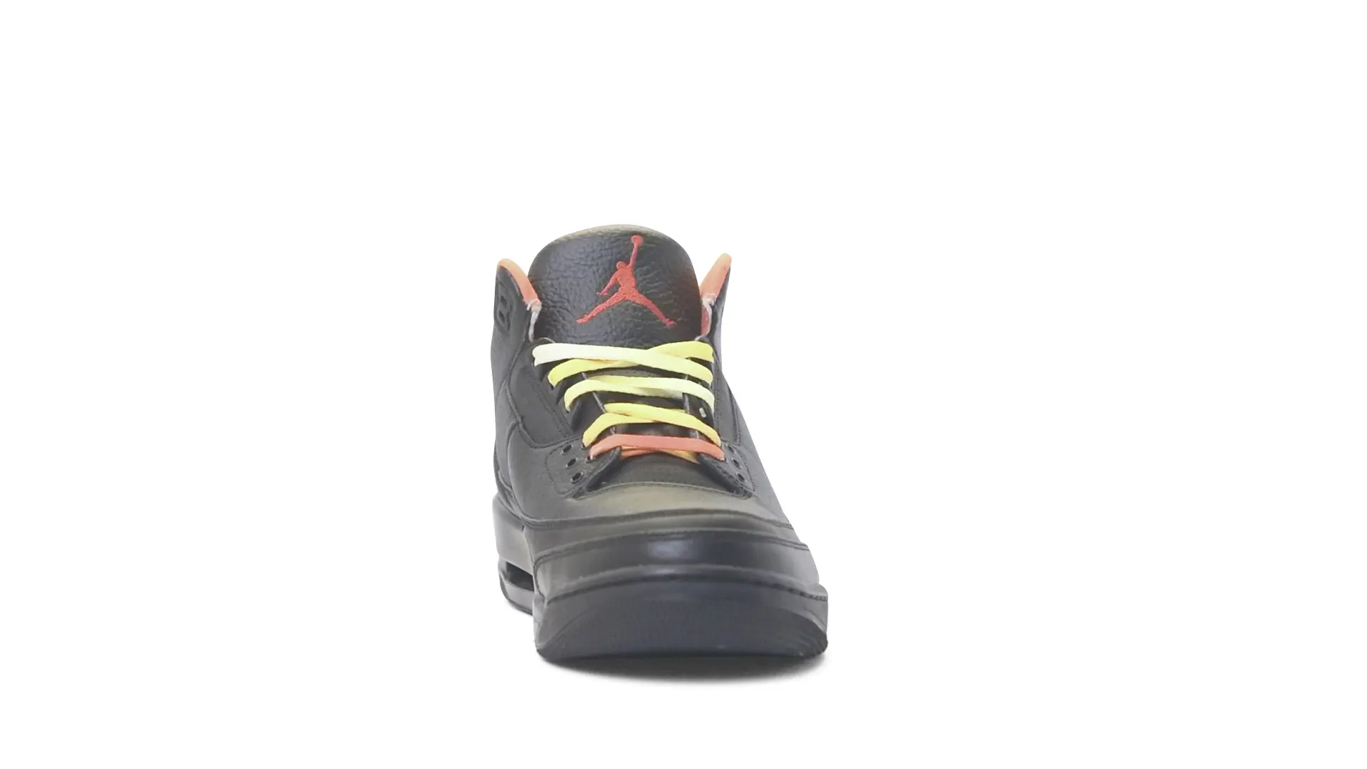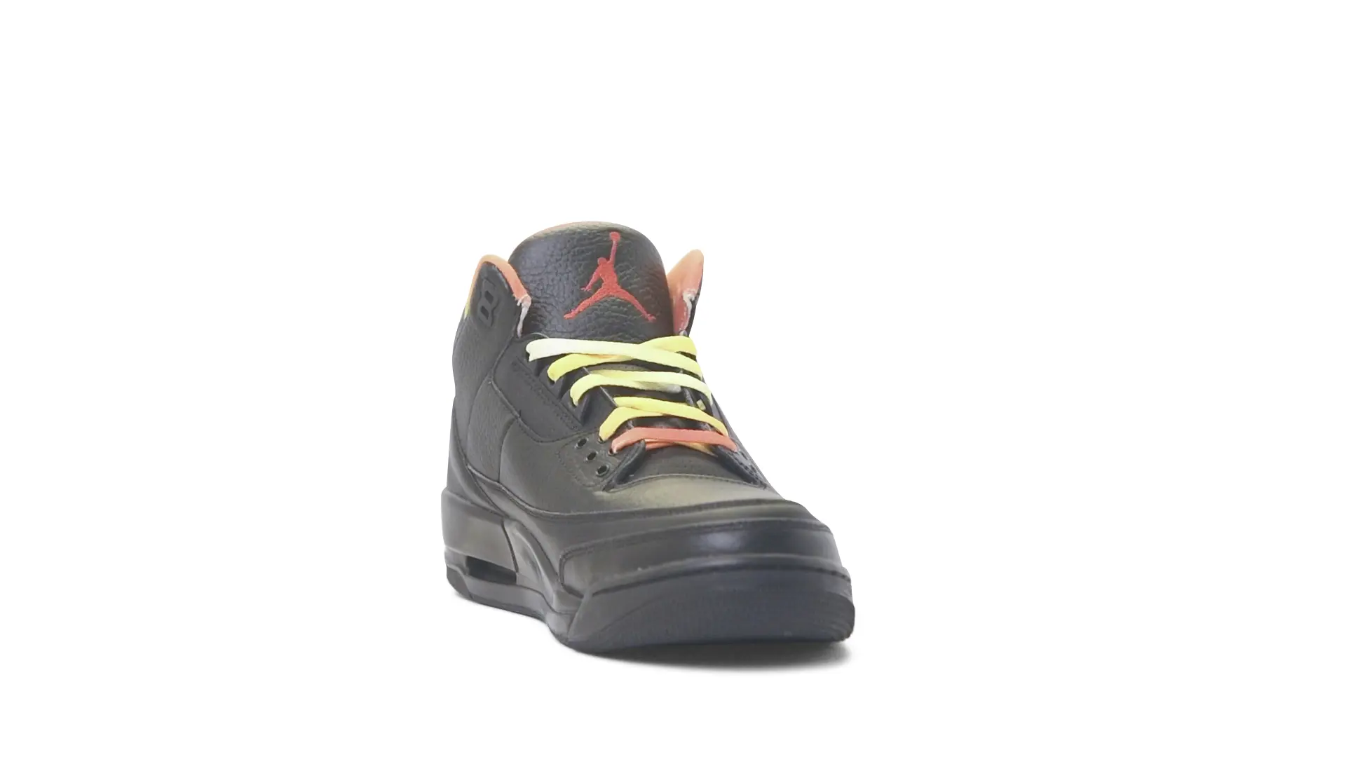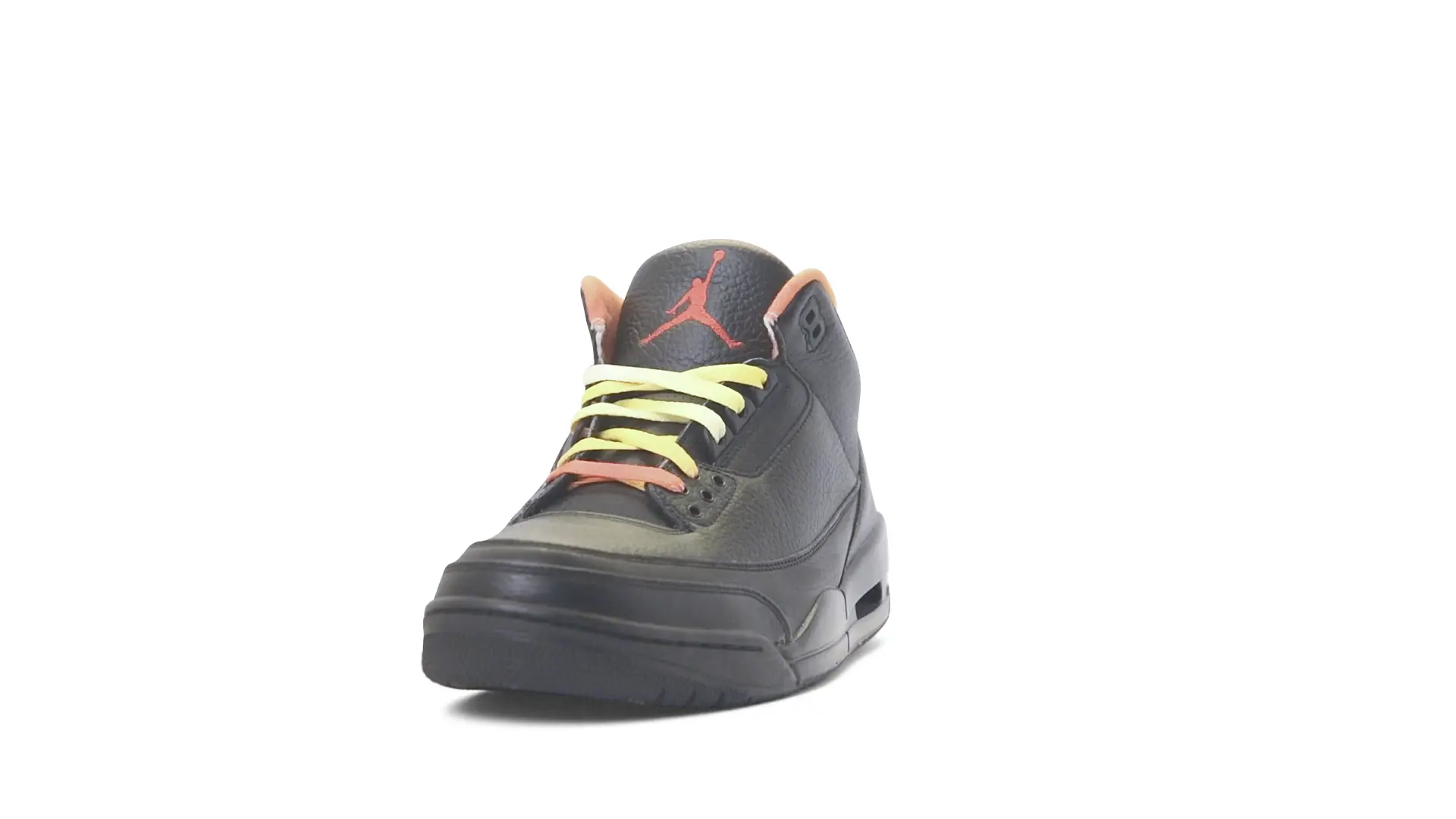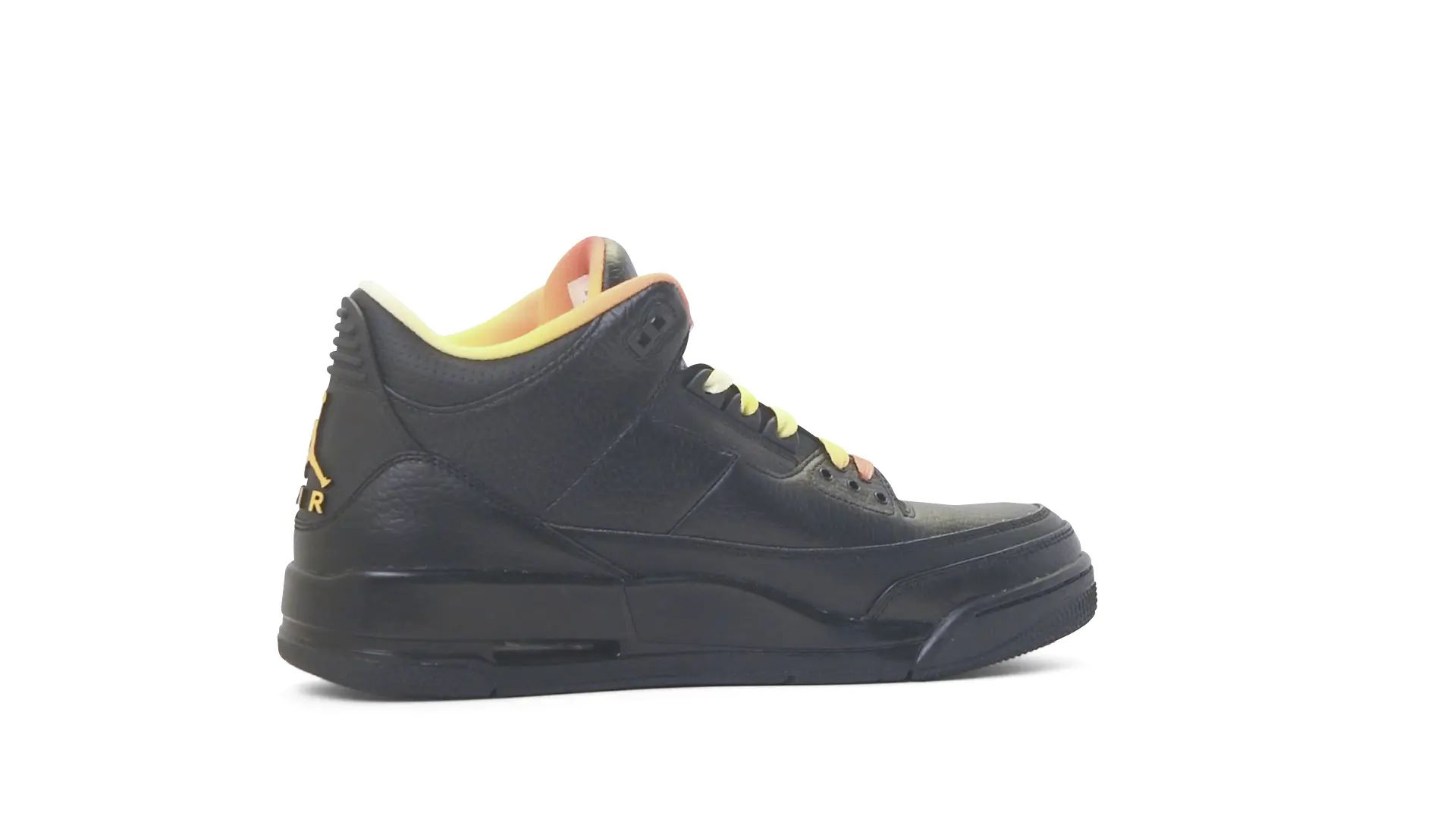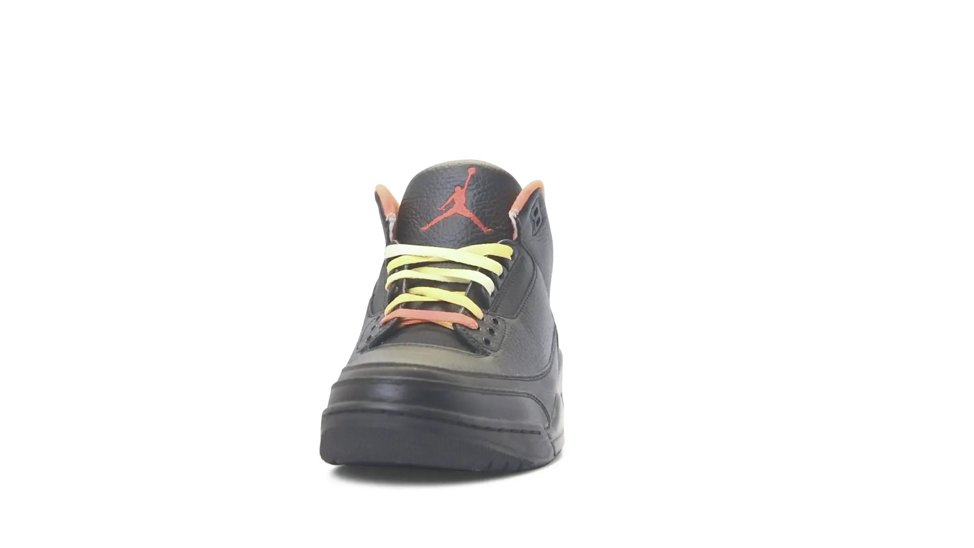 This Air Jordan 3 ‘ Drake vs Lil Wayne’ features a combination of tumbled and smooth black leather dominating the upper, accented by pops of orange and yellow on the laces and collar lining. Notably, the insole showcases a unique 'Drake vs. Lil Wayne' graphic, adding a personal touch to commemorate the tour and their partnership.