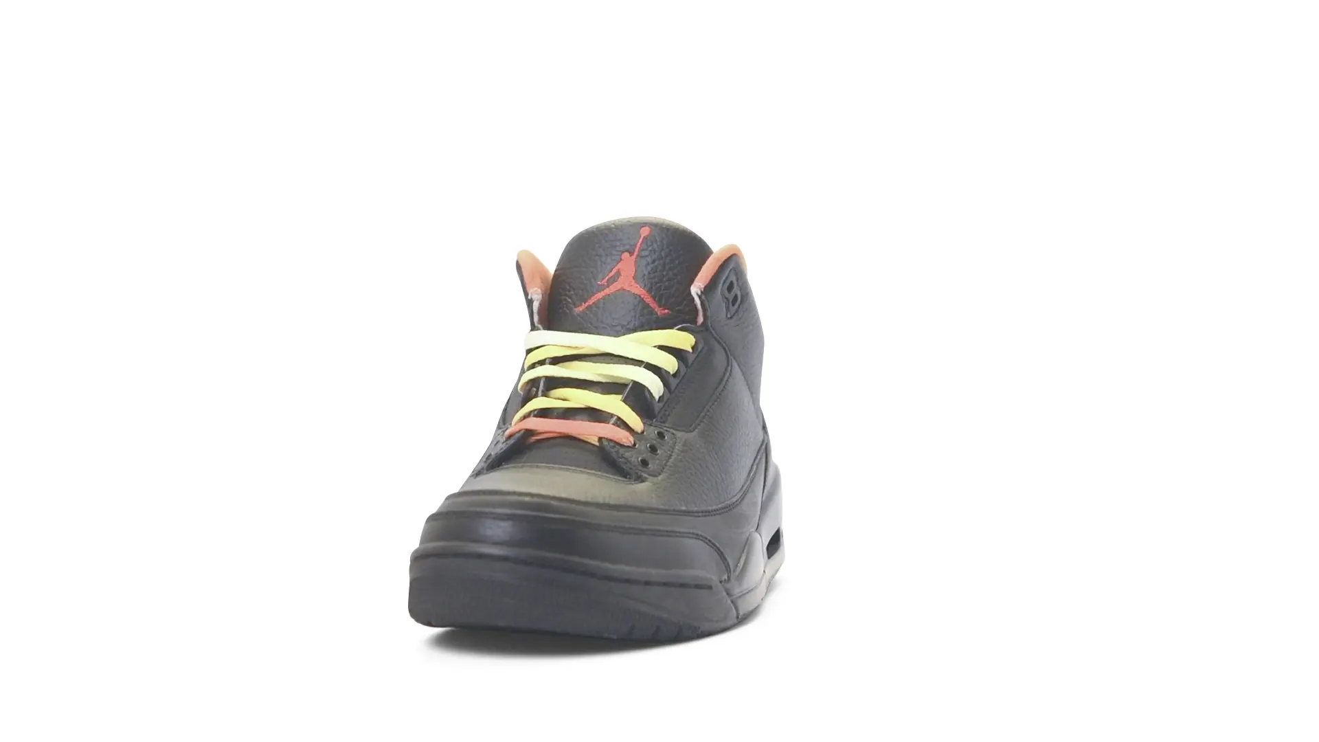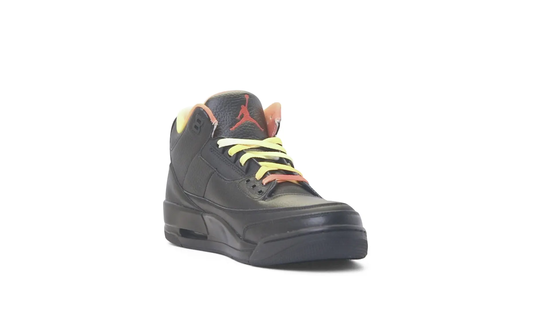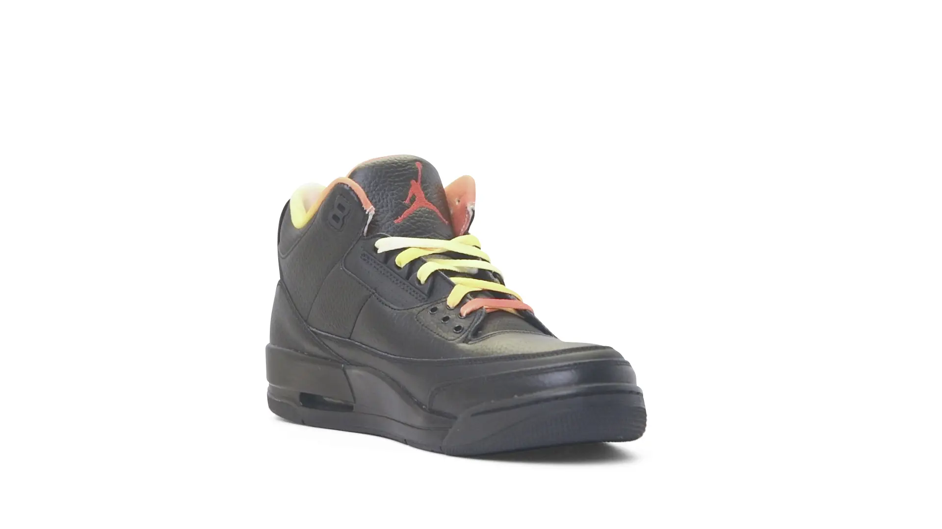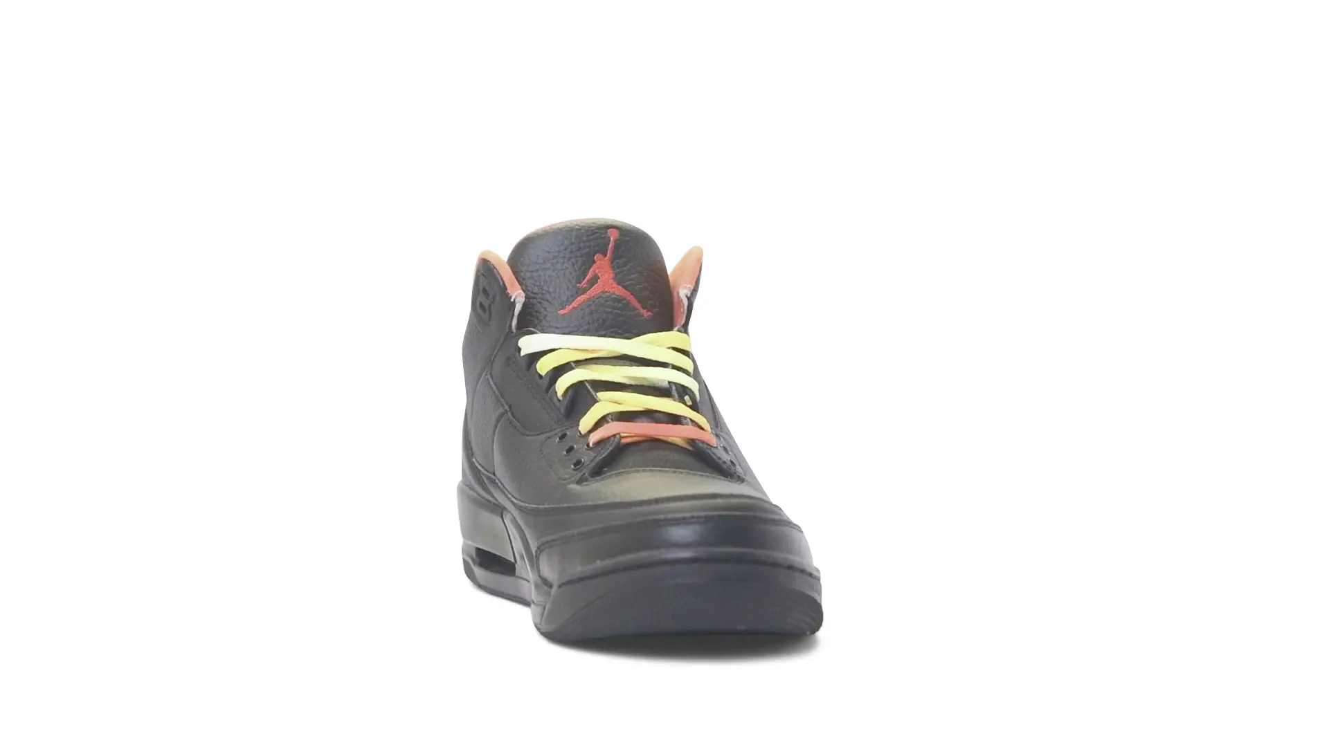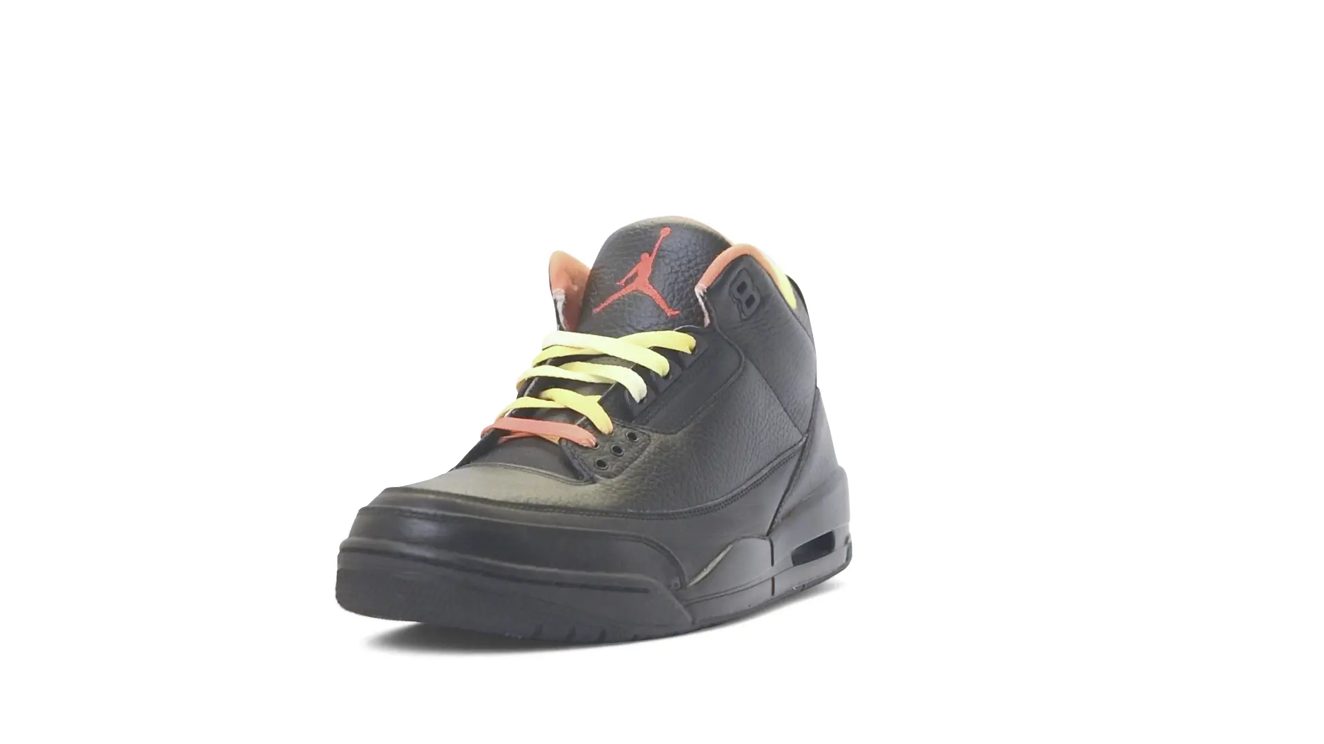 This Air Jordan 3 ‘ Drake vs Lil Wayne’ features a combination of tumbled and smooth black leather dominating the upper, accented by pops of orange and yellow on the laces and collar lining. Notably, the insole showcases a unique 'Drake vs. Lil Wayne' graphic, adding a personal touch to commemorate the tour and their partnership.