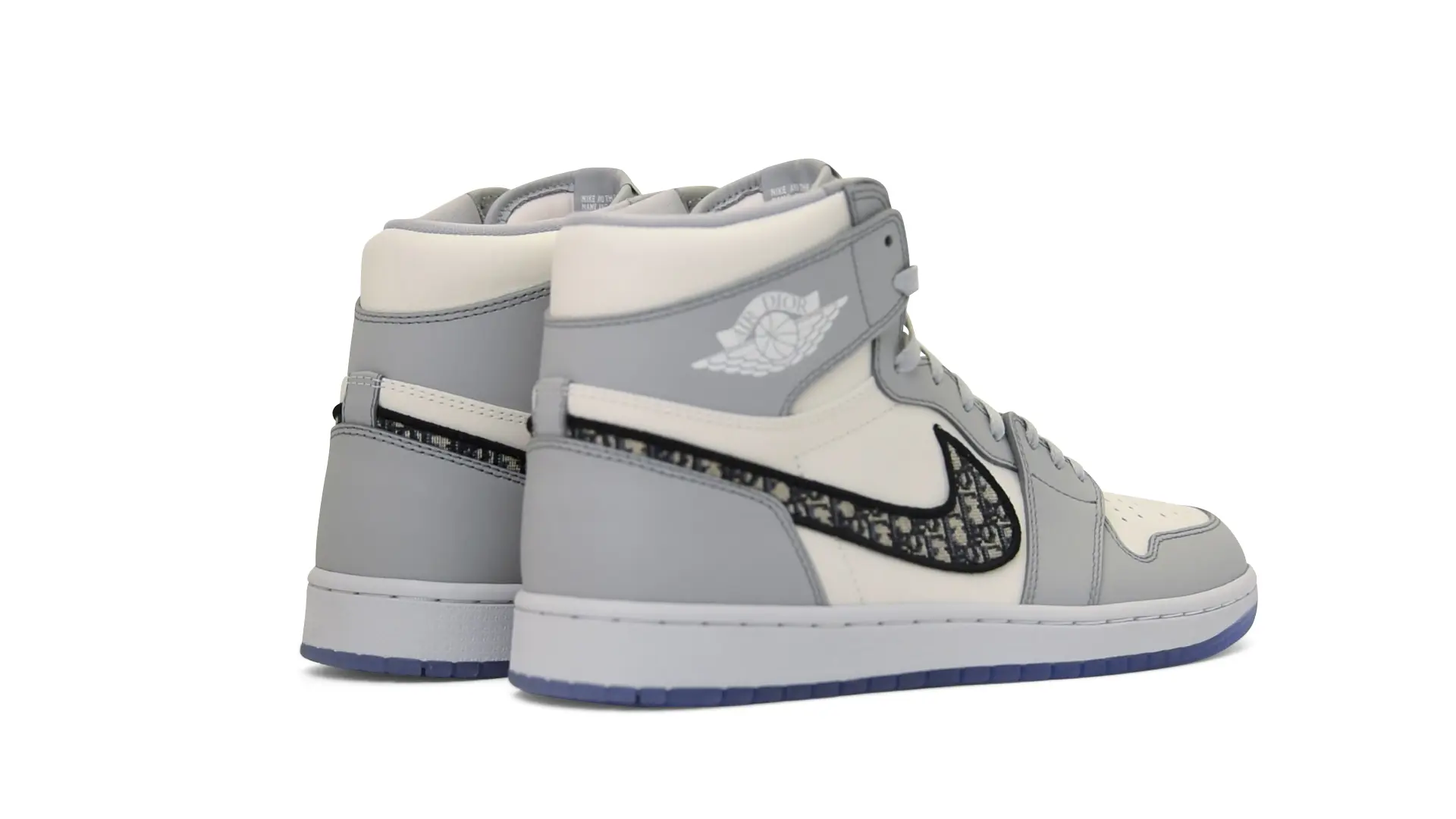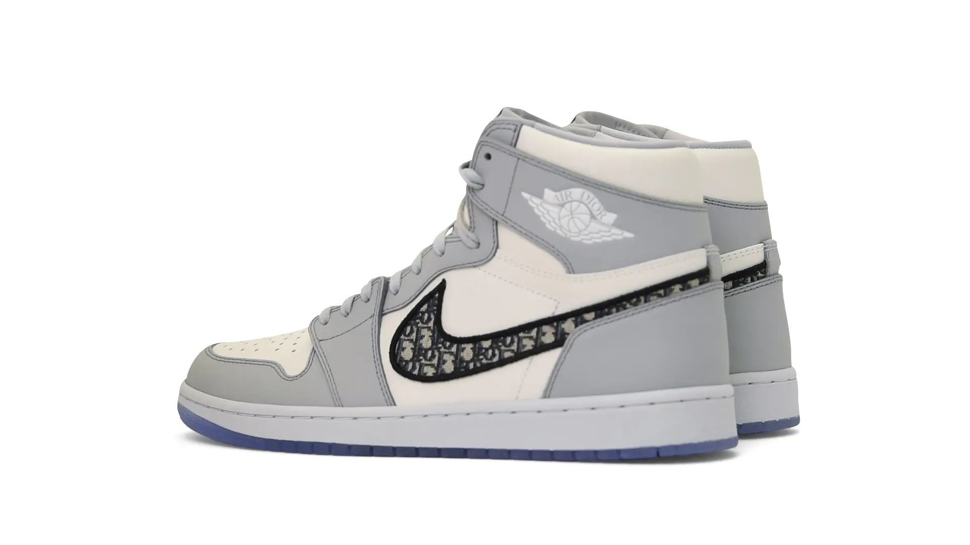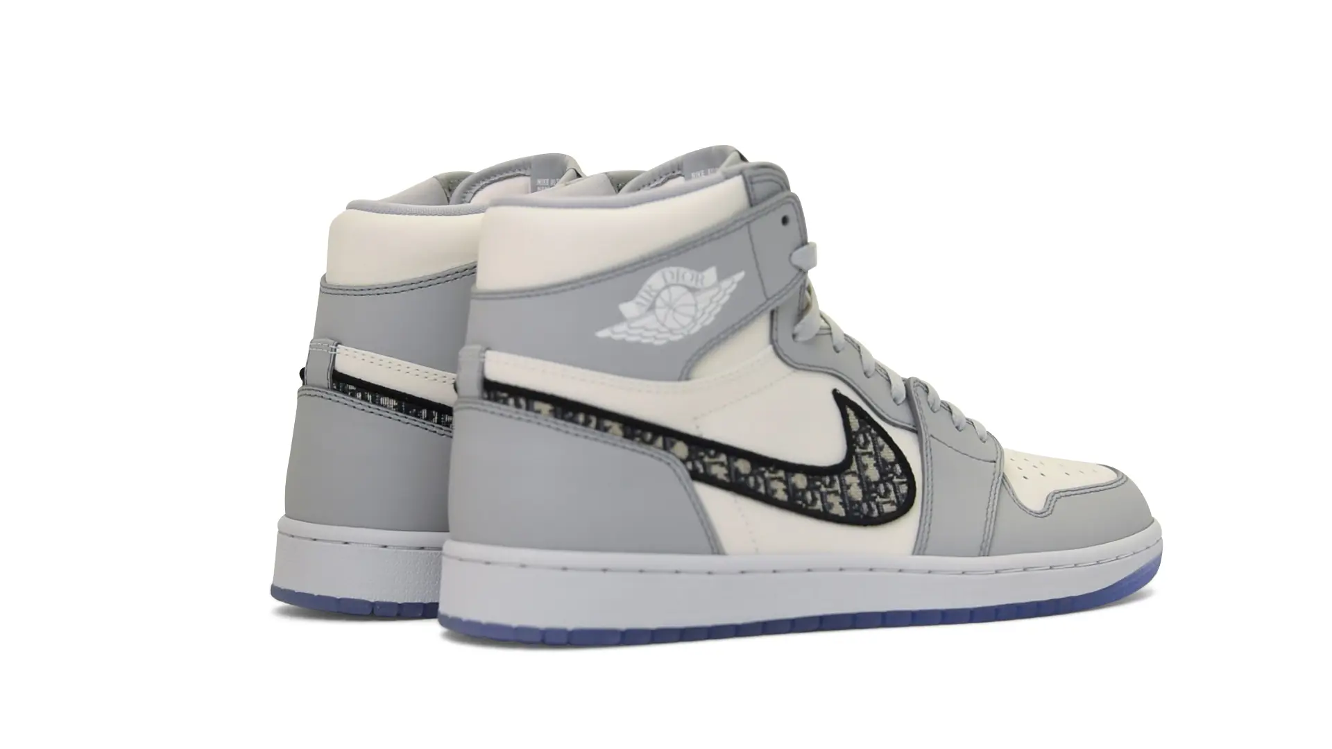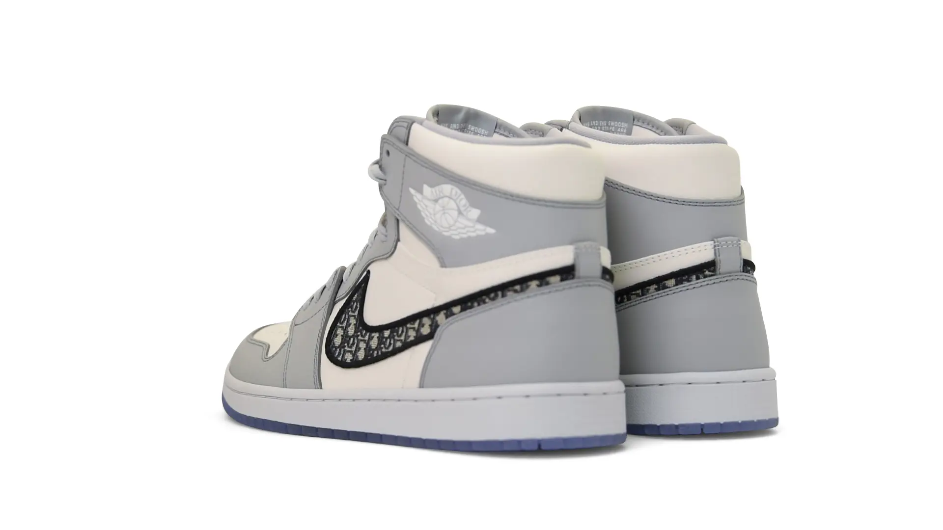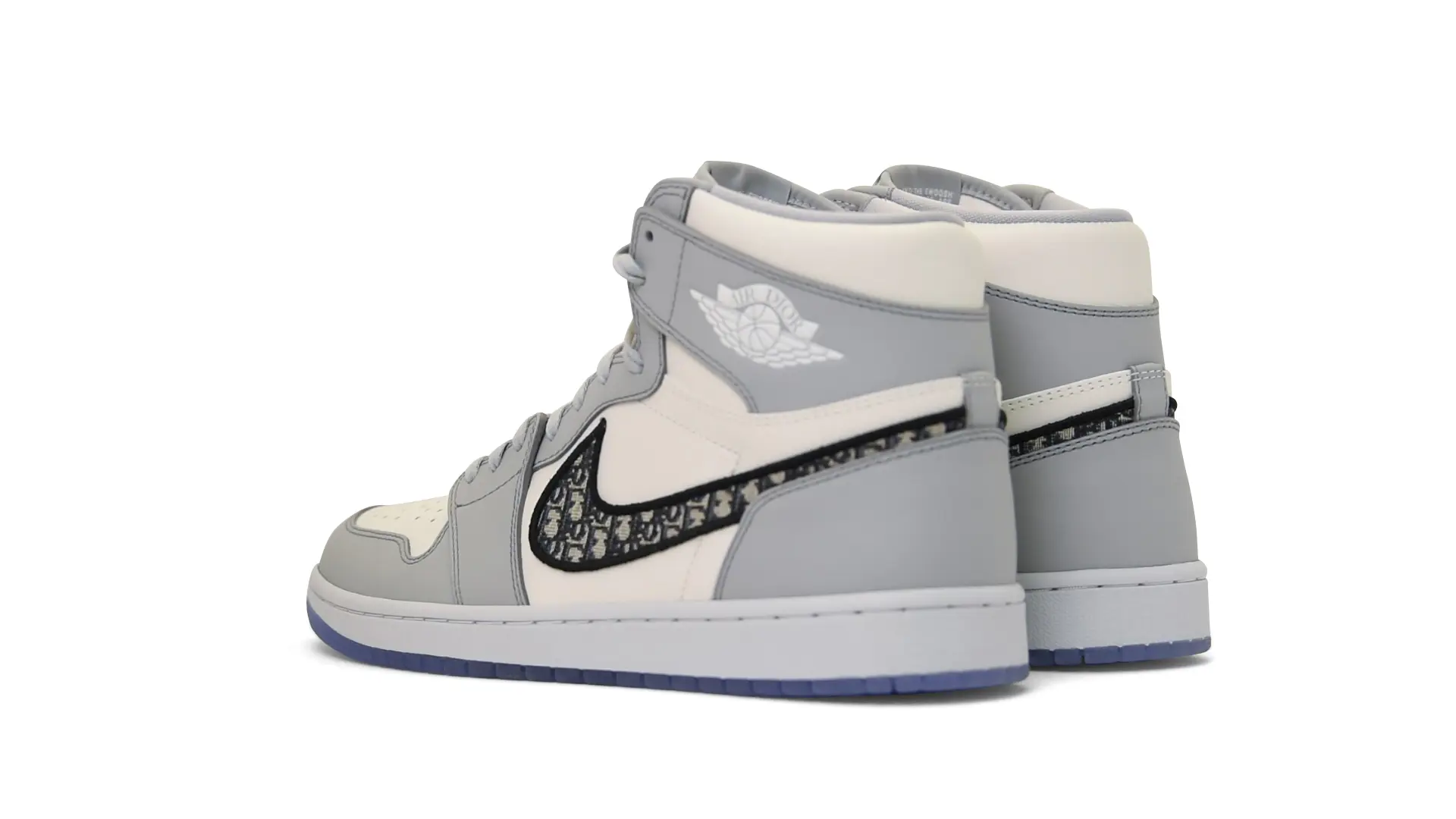 Limited to only 8500 pairs of Highs and 4700 pairs of Lows, both styles feature the Dior Gray color palette, an homage to one of Christian Dior’s most-loved hues. The shoes were handcrafted in Italy from calfskin leather and accented with Dior’s signature Oblique monogram jacquard Swooshes. Dior and Air Jordan’s iconic branding are mixed on the Wings logo, tongue labels and outsole graphics.