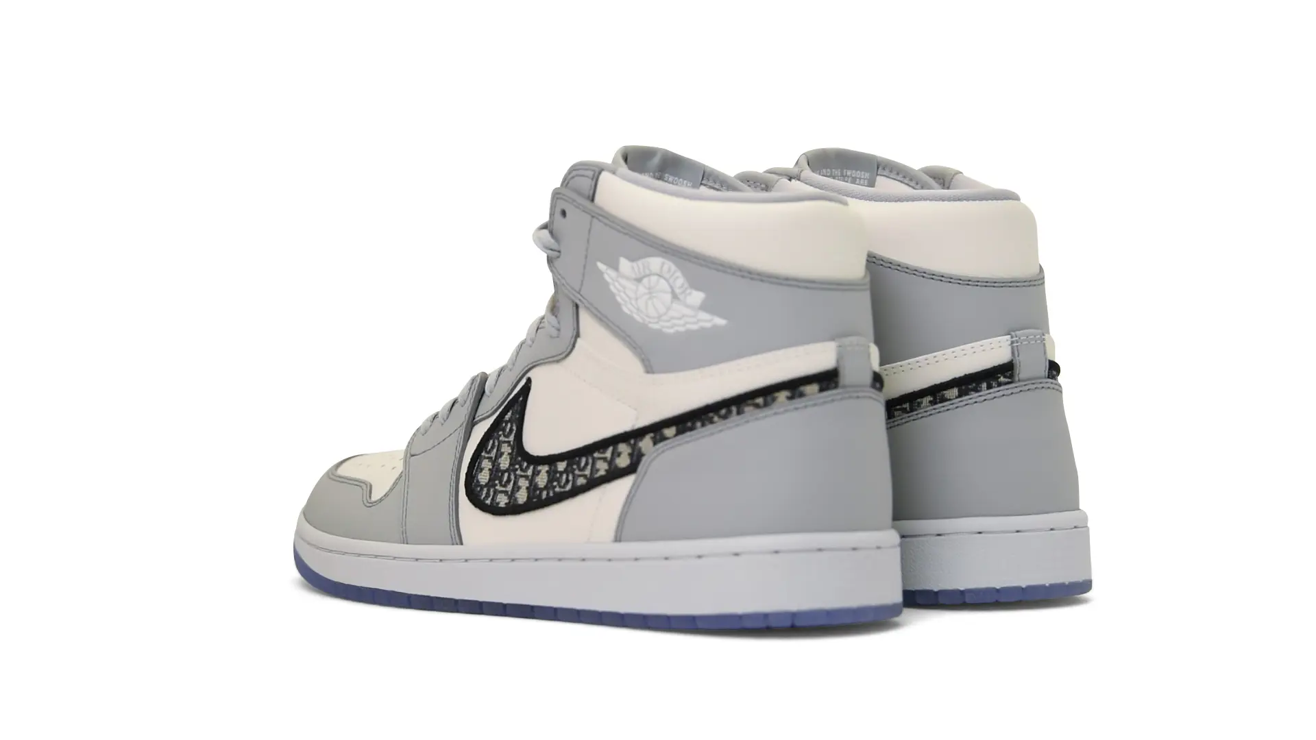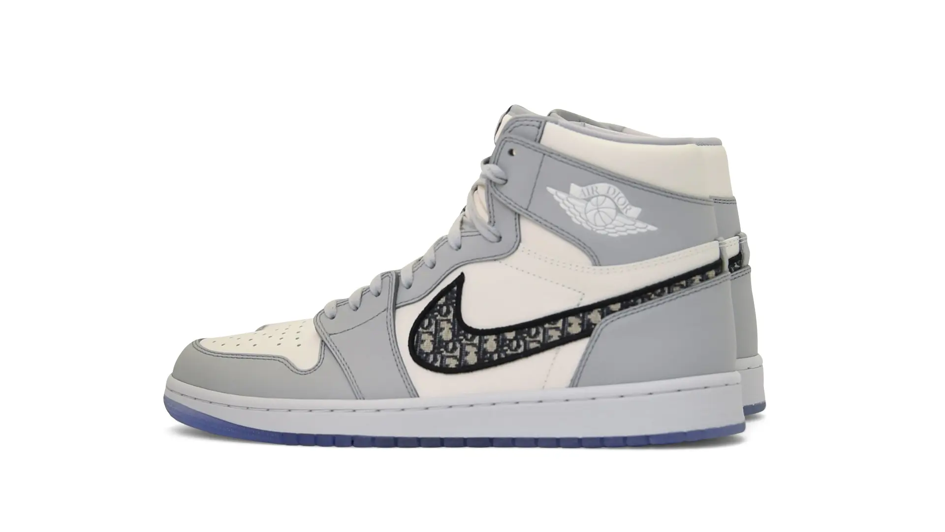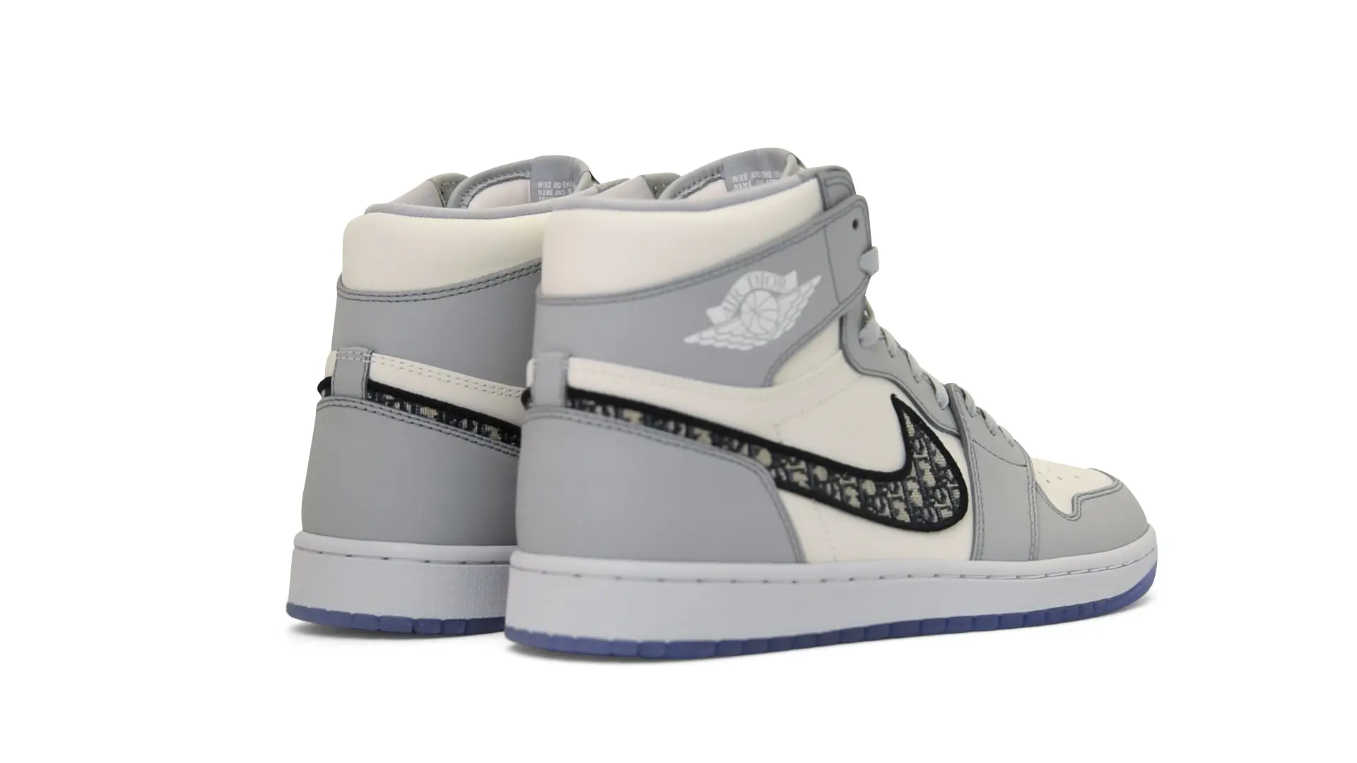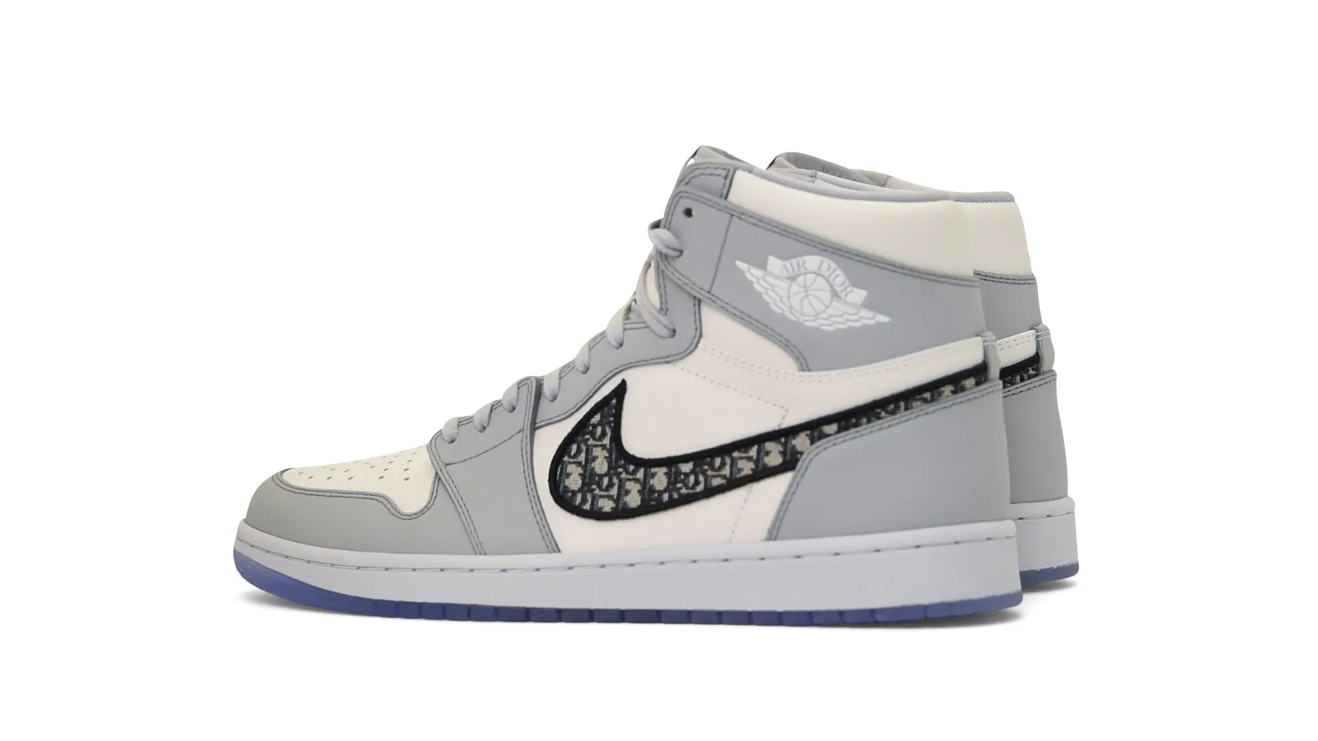 Limited to only 8500 pairs of Highs and 4700 pairs of Lows, both styles feature the Dior Gray color palette, an homage to one of Christian Dior’s most-loved hues. The shoes were handcrafted in Italy from calfskin leather and accented with Dior’s signature Oblique monogram jacquard Swooshes. Dior and Air Jordan’s iconic branding are mixed on the Wings logo, tongue labels and outsole graphics.