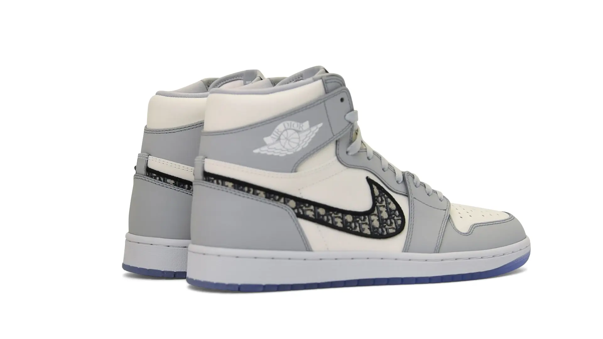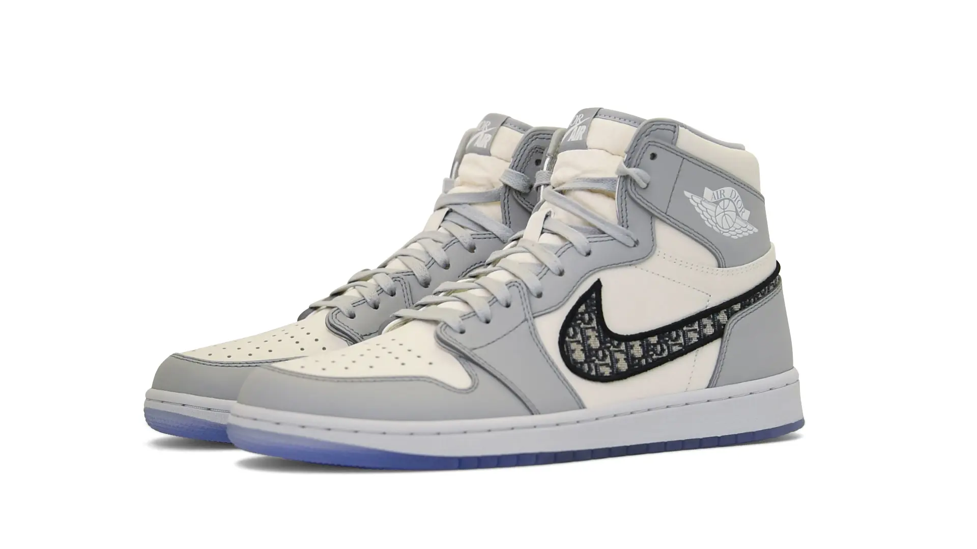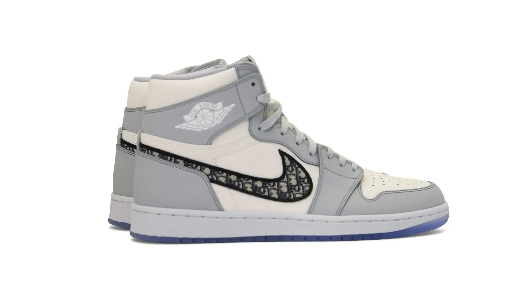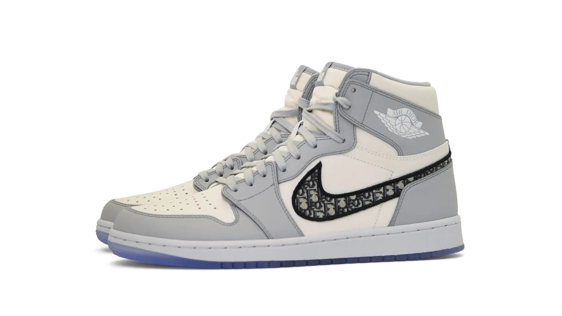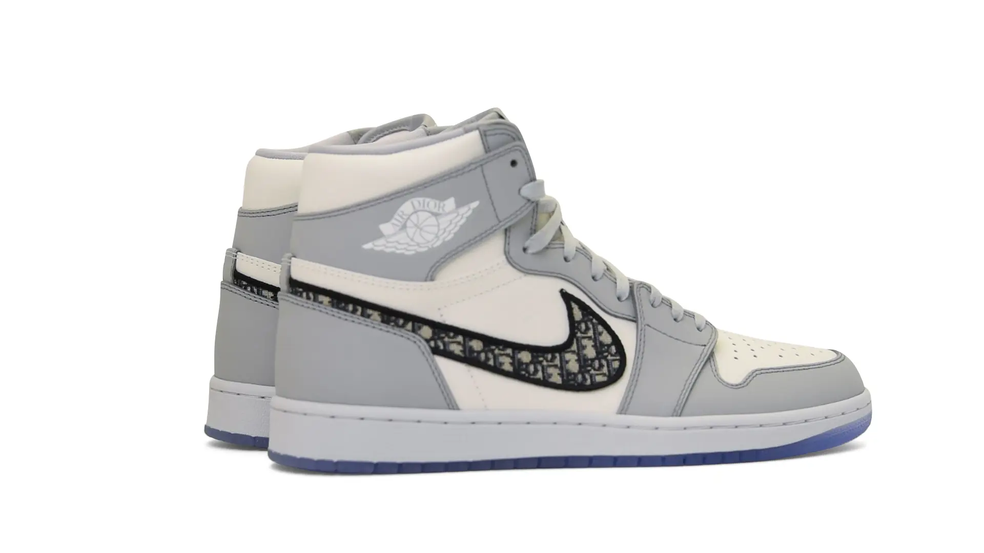 Limited to only 8500 pairs of Highs and 4700 pairs of Lows, both styles feature the Dior Gray color palette, an homage to one of Christian Dior’s most-loved hues. The shoes were handcrafted in Italy from calfskin leather and accented with Dior’s signature Oblique monogram jacquard Swooshes. Dior and Air Jordan’s iconic branding are mixed on the Wings logo, tongue labels and outsole graphics.