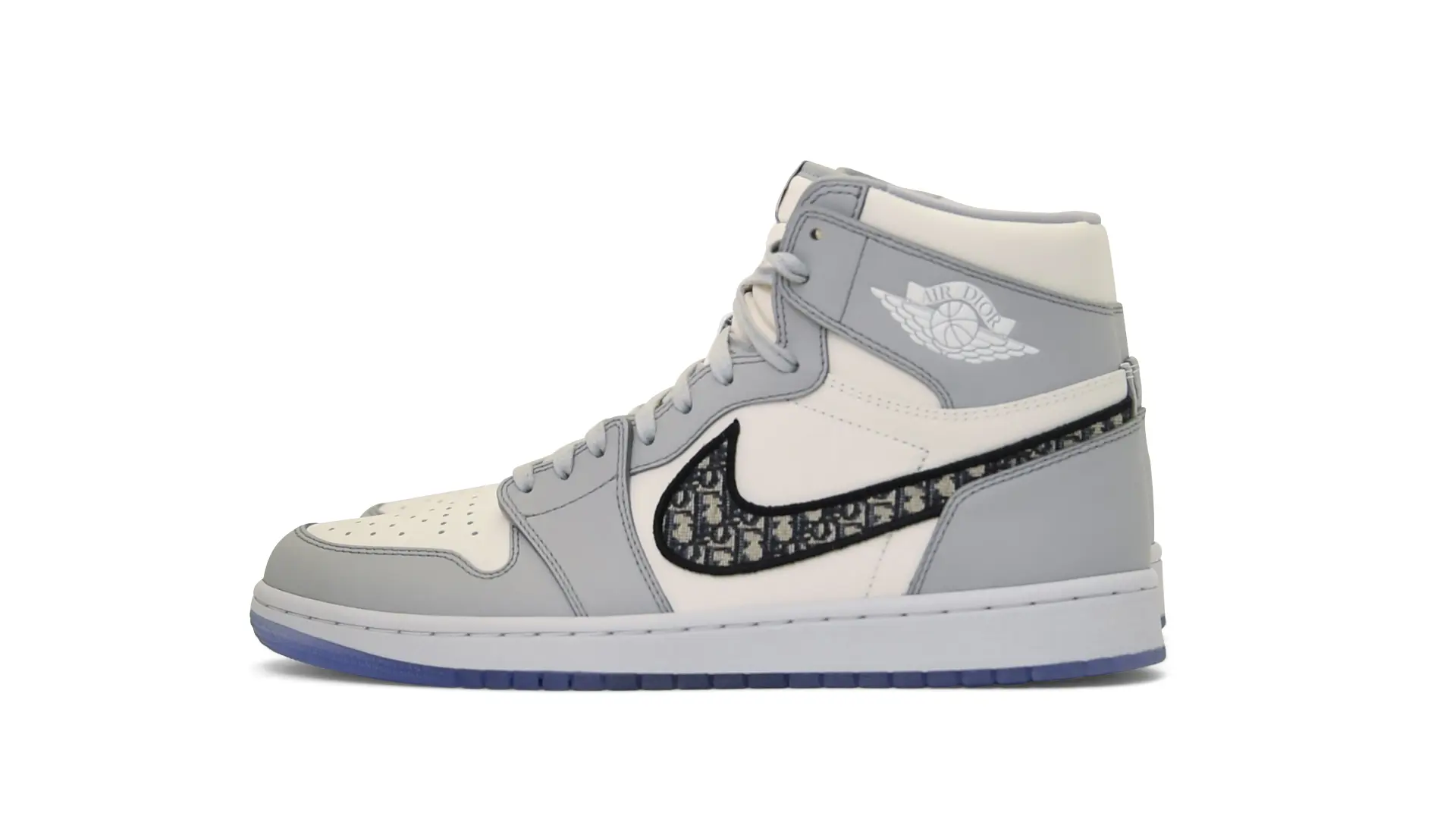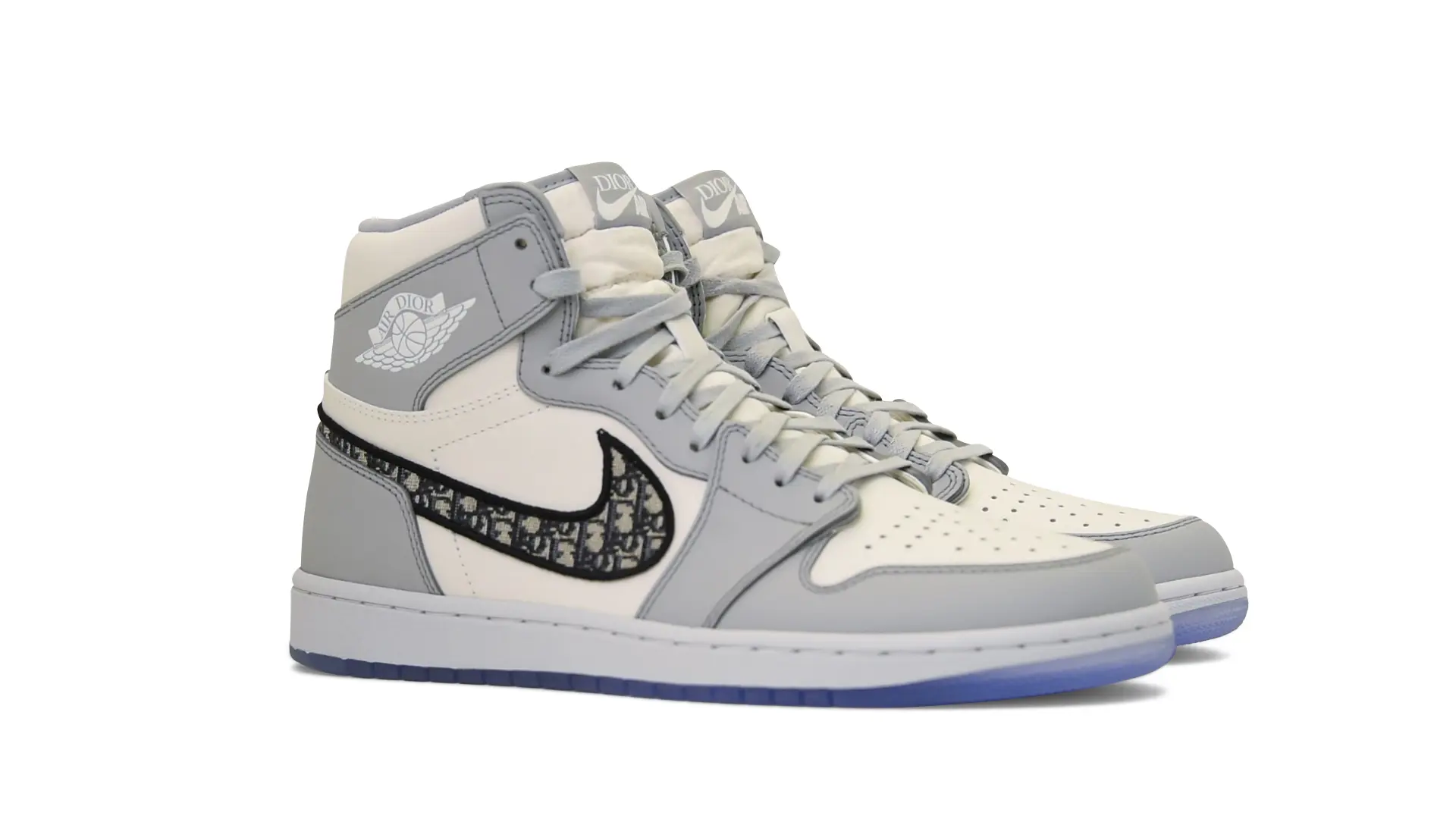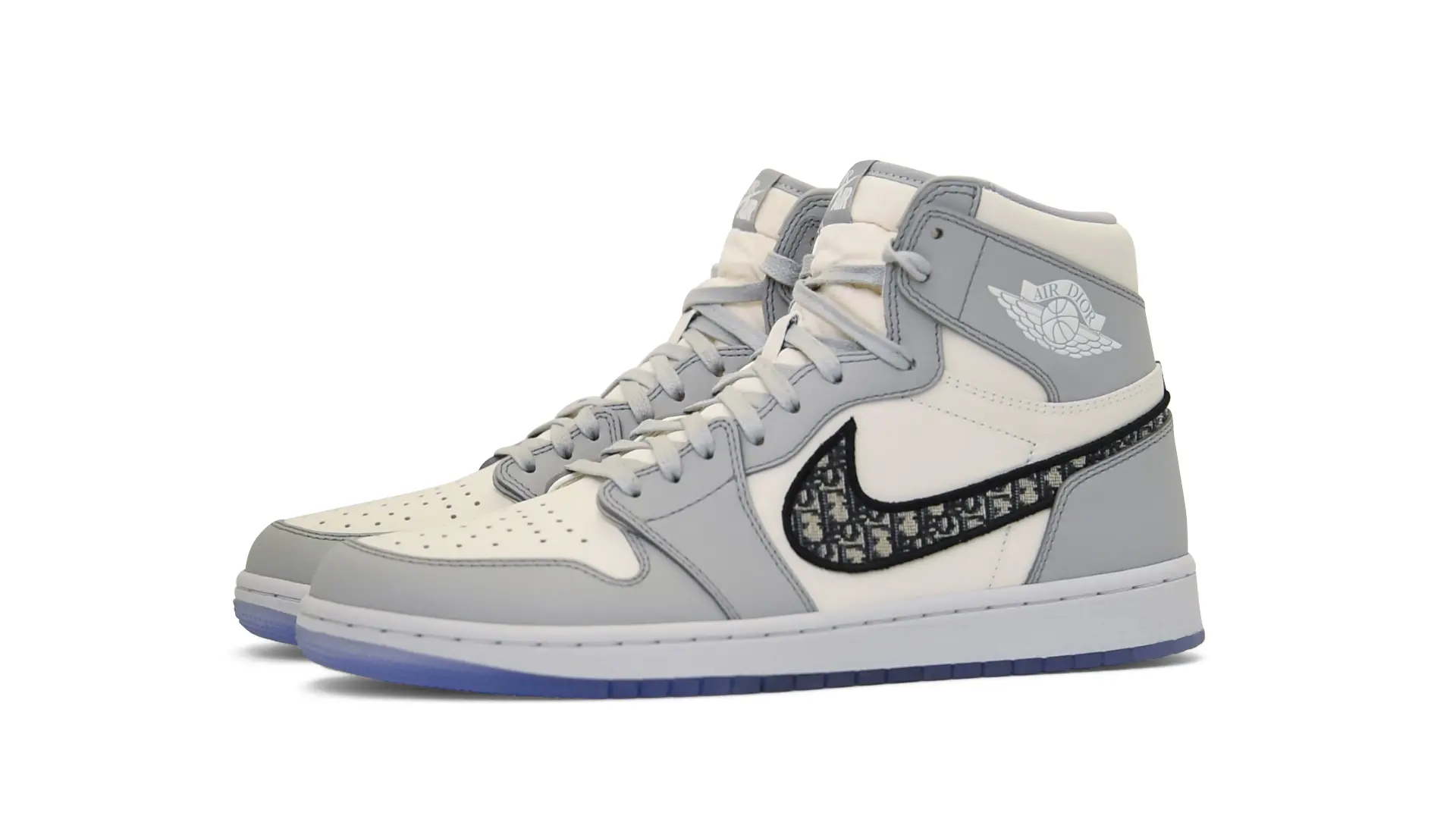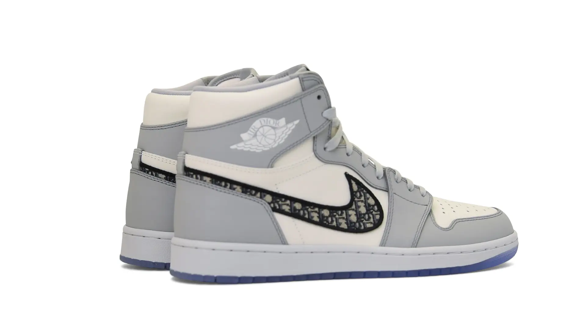 Limited to only 8500 pairs of Highs and 4700 pairs of Lows, both styles feature the Dior Gray color palette, an homage to one of Christian Dior’s most-loved hues. The shoes were handcrafted in Italy from calfskin leather and accented with Dior’s signature Oblique monogram jacquard Swooshes. Dior and Air Jordan’s iconic branding are mixed on the Wings logo, tongue labels and outsole graphics.