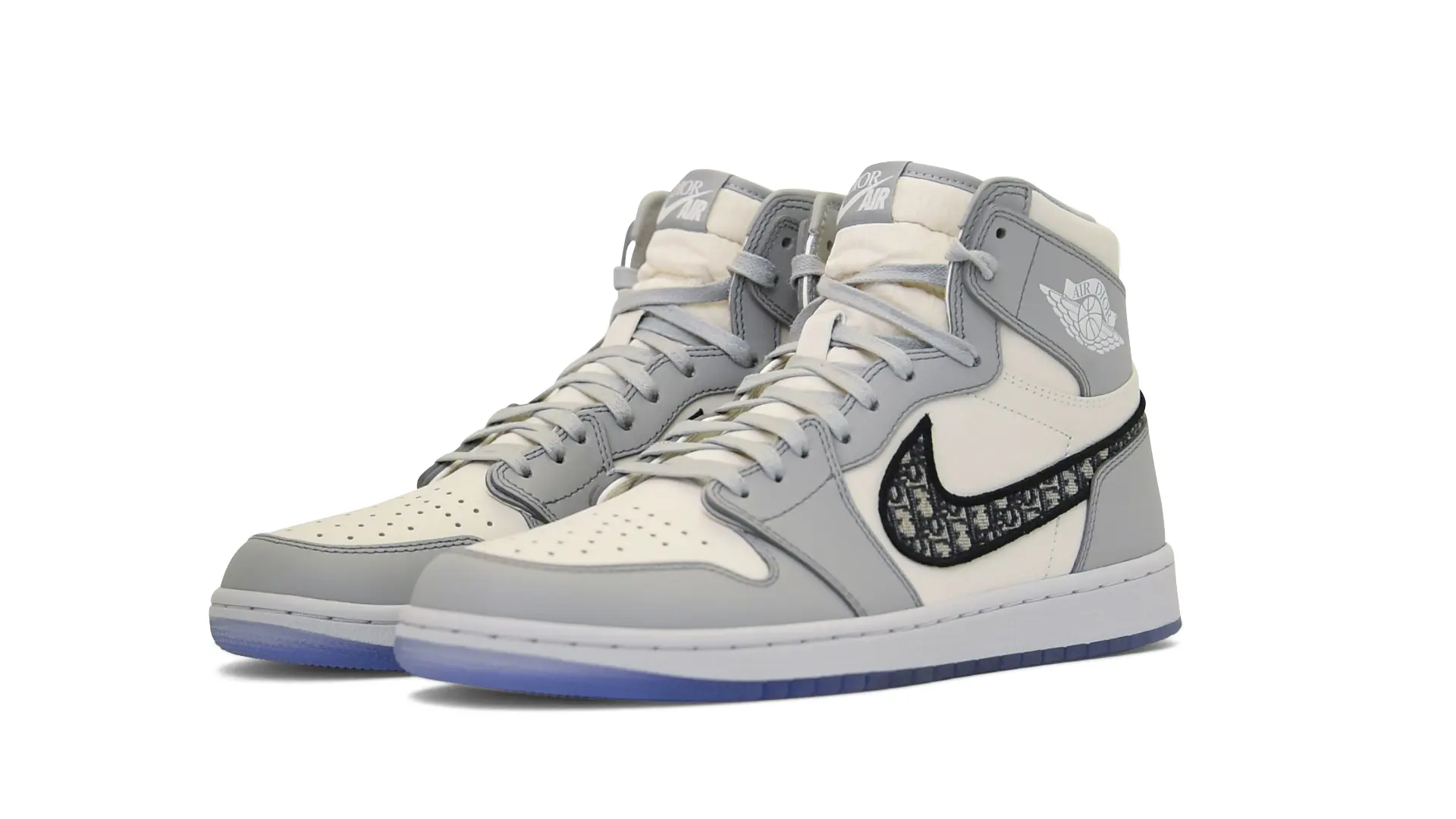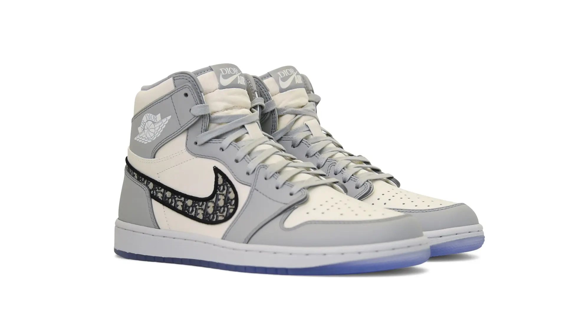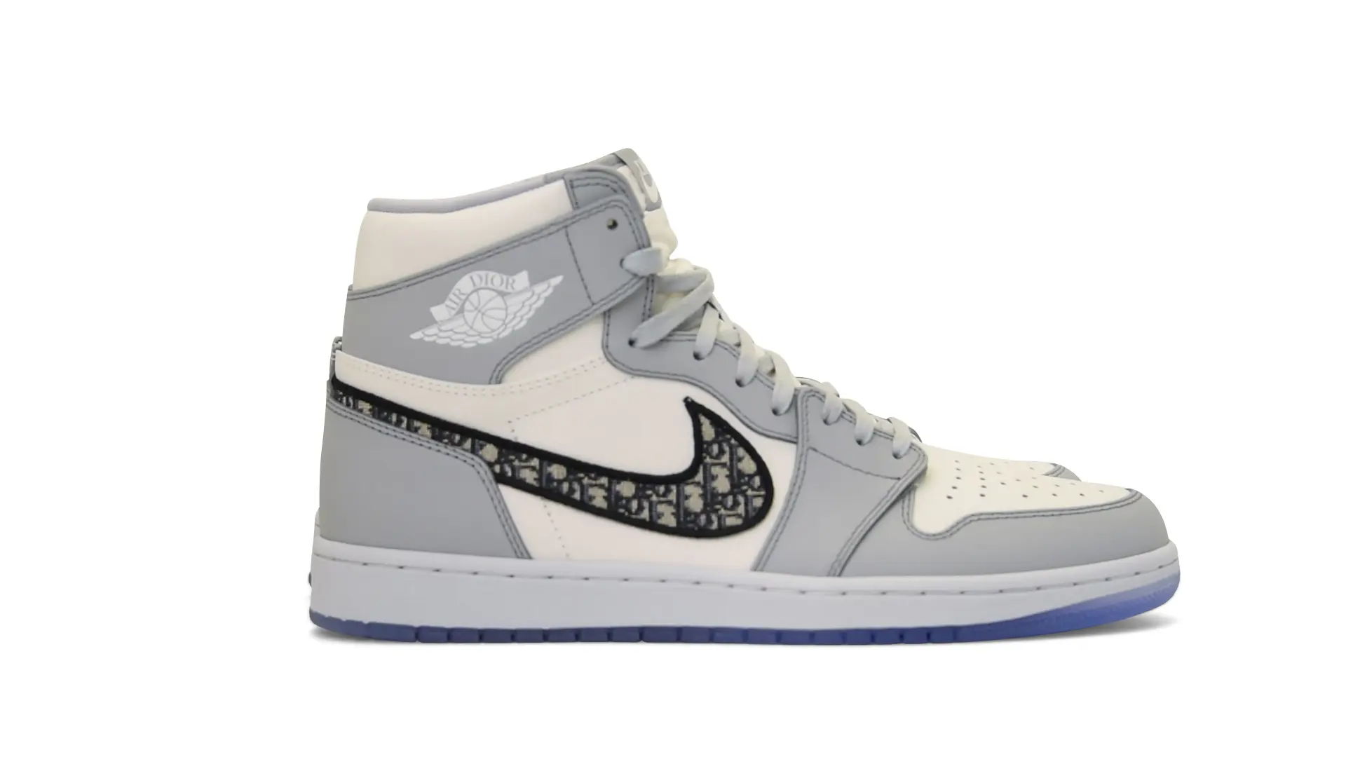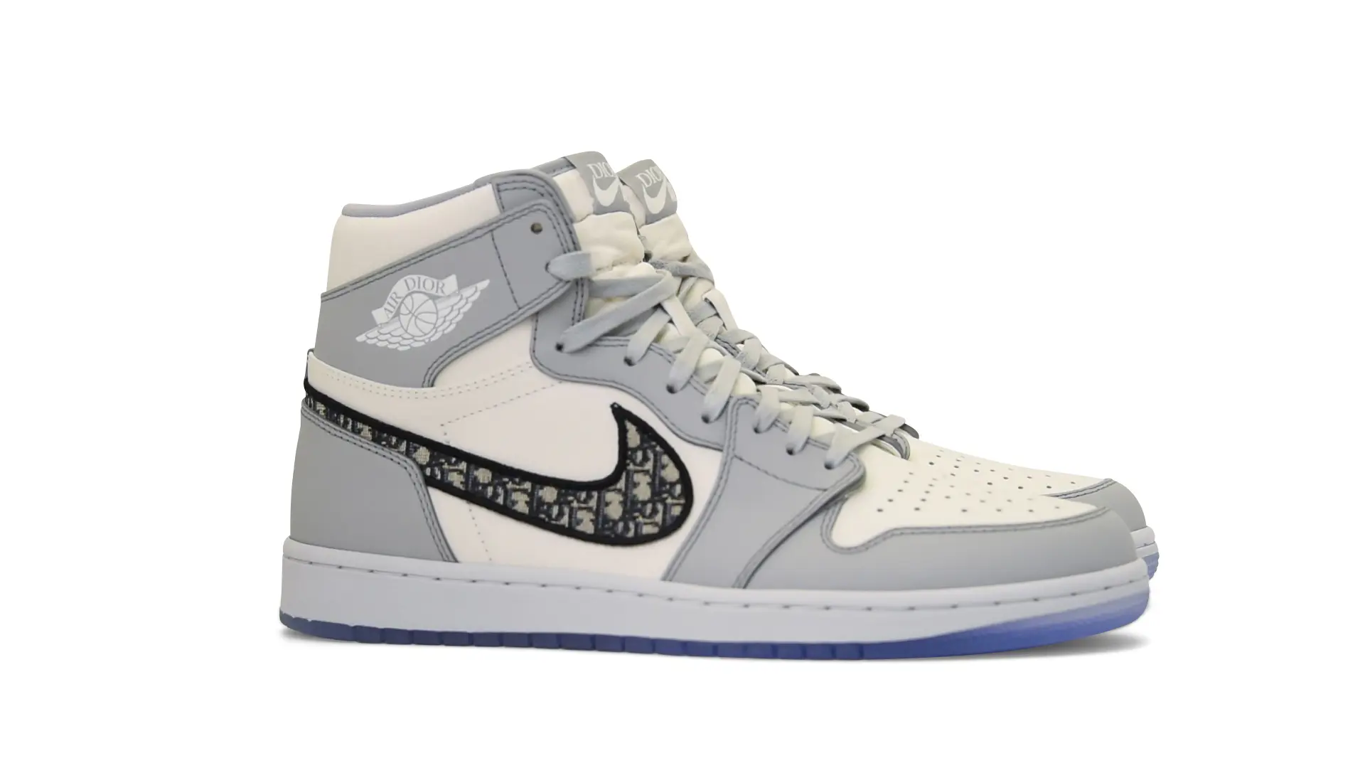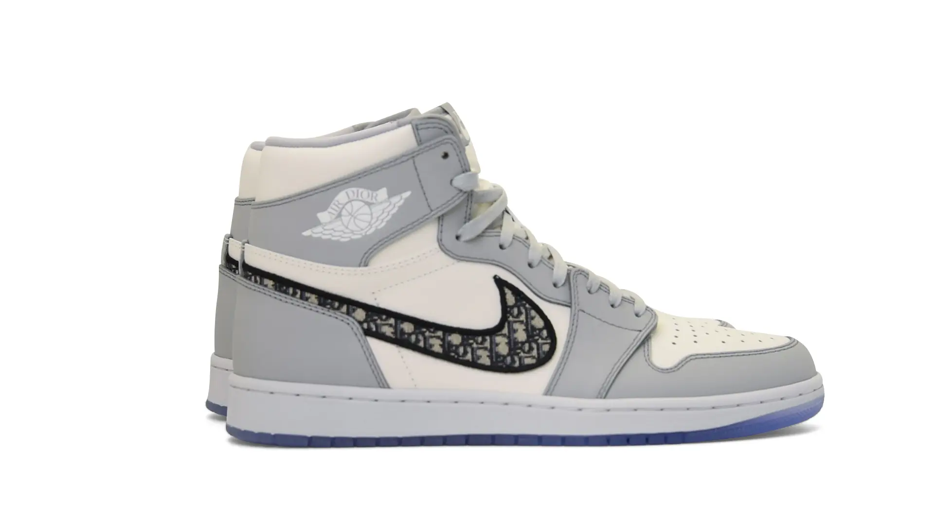Limited to only 8500 pairs of Highs and 4700 pairs of Lows, both styles feature the Dior Gray color palette, an homage to one of Christian Dior’s most-loved hues. The shoes were handcrafted in Italy from calfskin leather and accented with Dior’s signature Oblique monogram jacquard Swooshes. Dior and Air Jordan’s iconic branding are mixed on the Wings logo, tongue labels and outsole graphics.