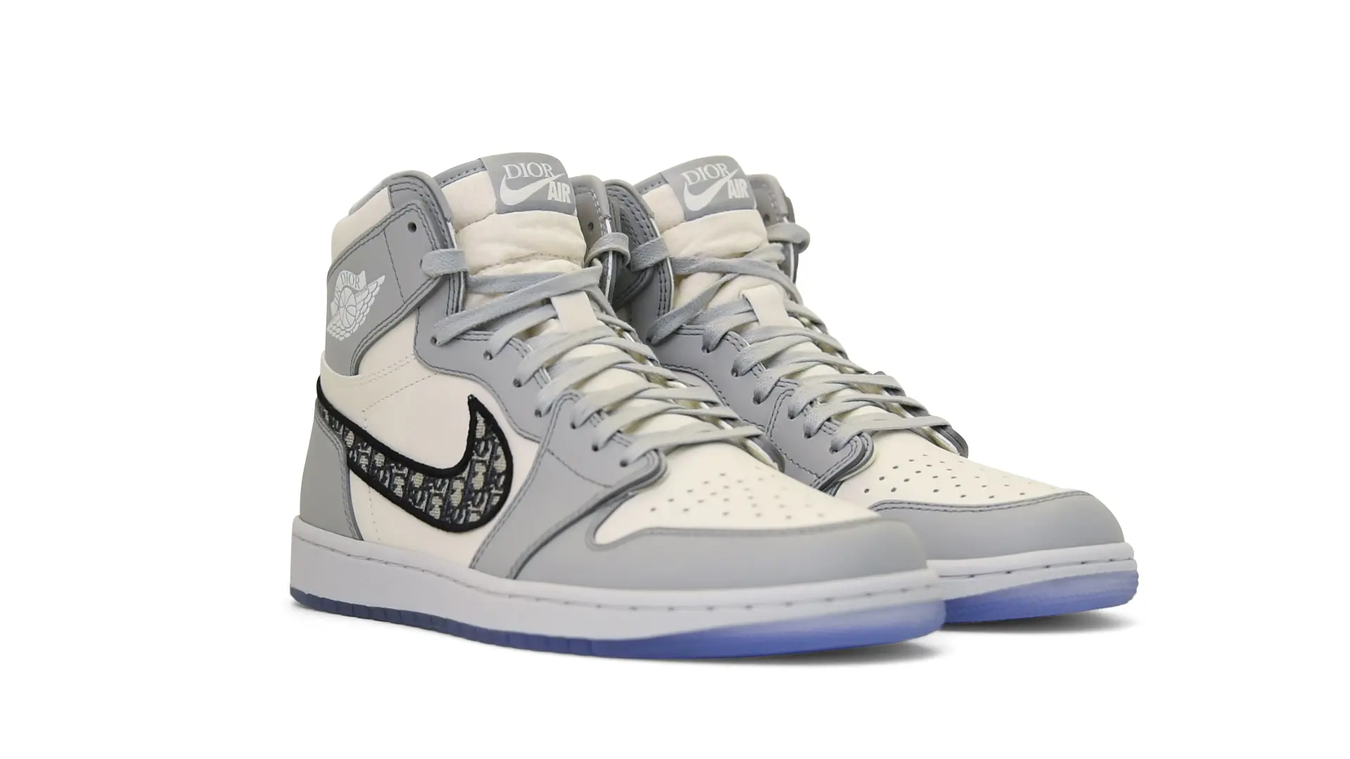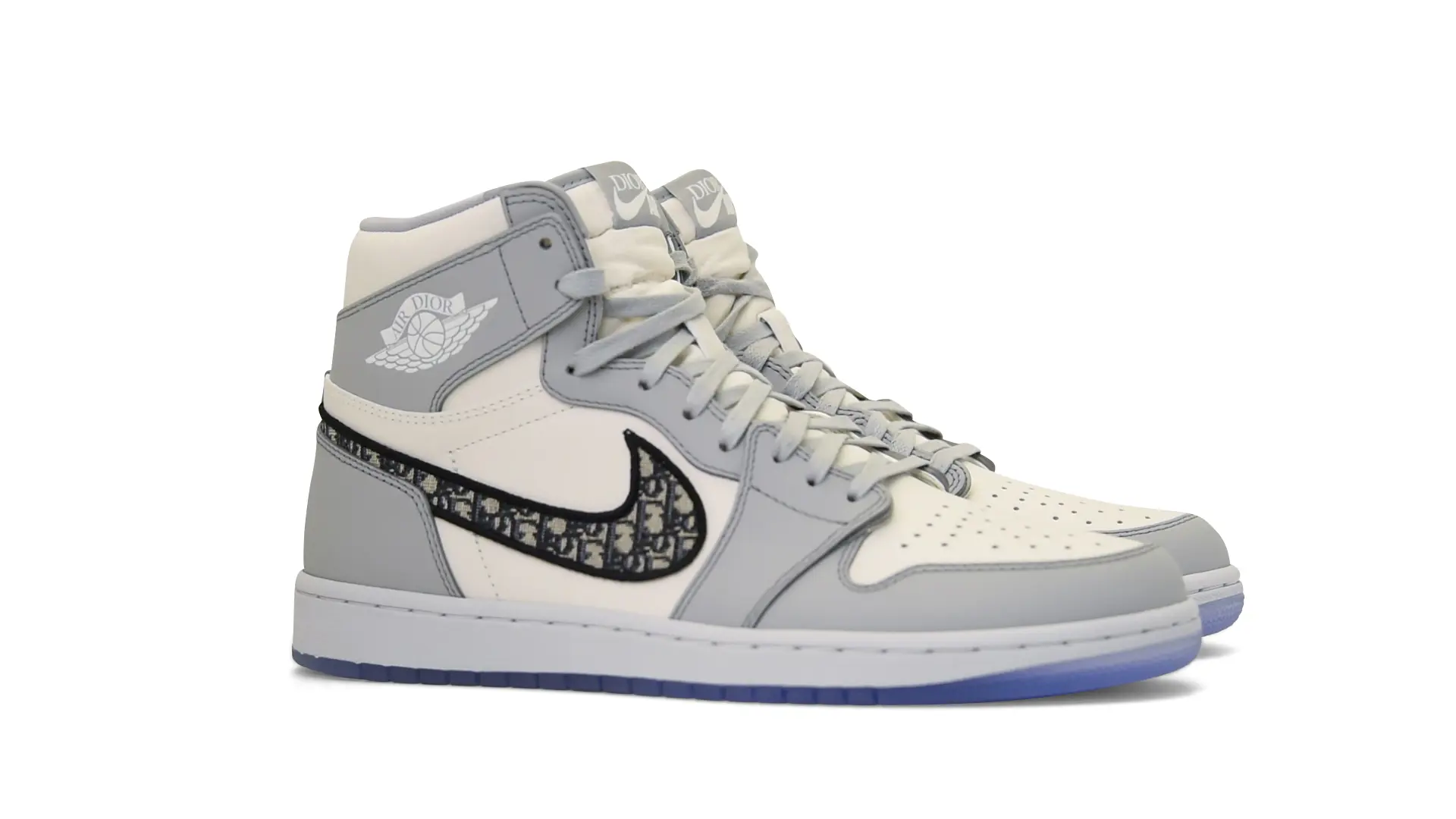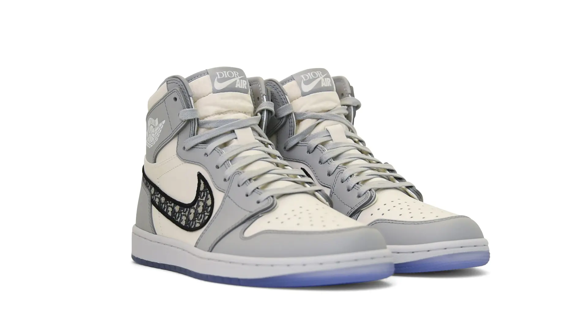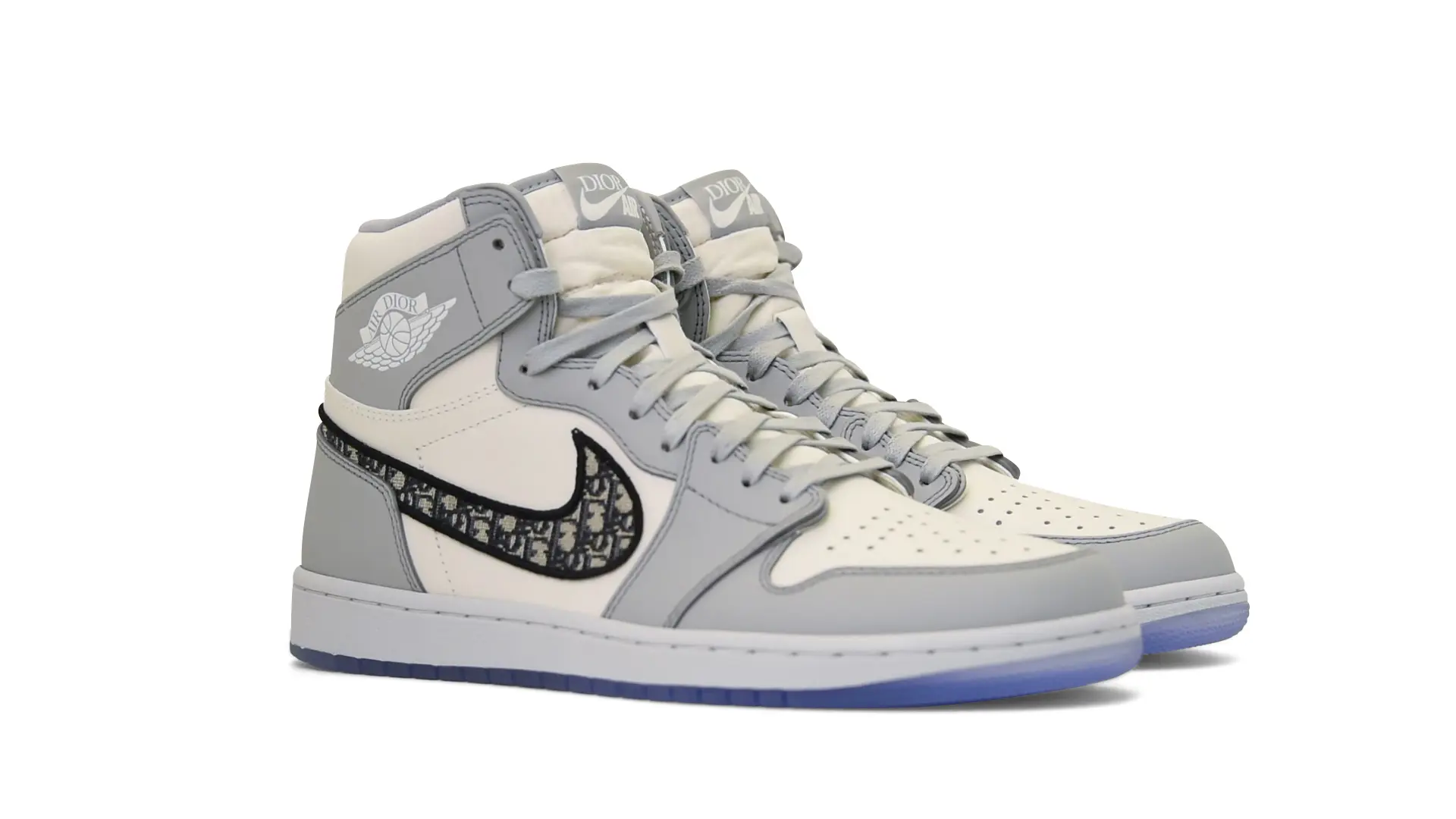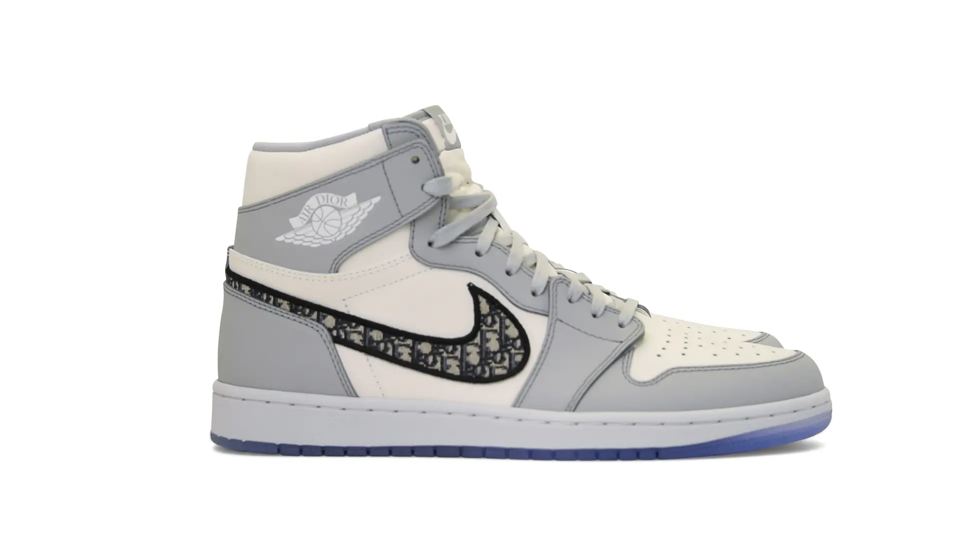 Limited to only 8500 pairs of Highs and 4700 pairs of Lows, both styles feature the Dior Gray color palette, an homage to one of Christian Dior’s most-loved hues. The shoes were handcrafted in Italy from calfskin leather and accented with Dior’s signature Oblique monogram jacquard Swooshes. Dior and Air Jordan’s iconic branding are mixed on the Wings logo, tongue labels and outsole graphics.