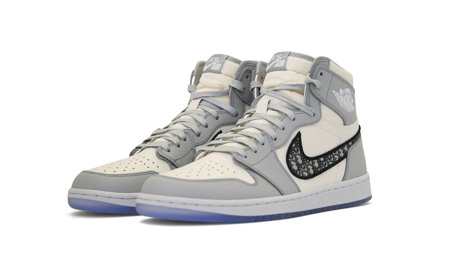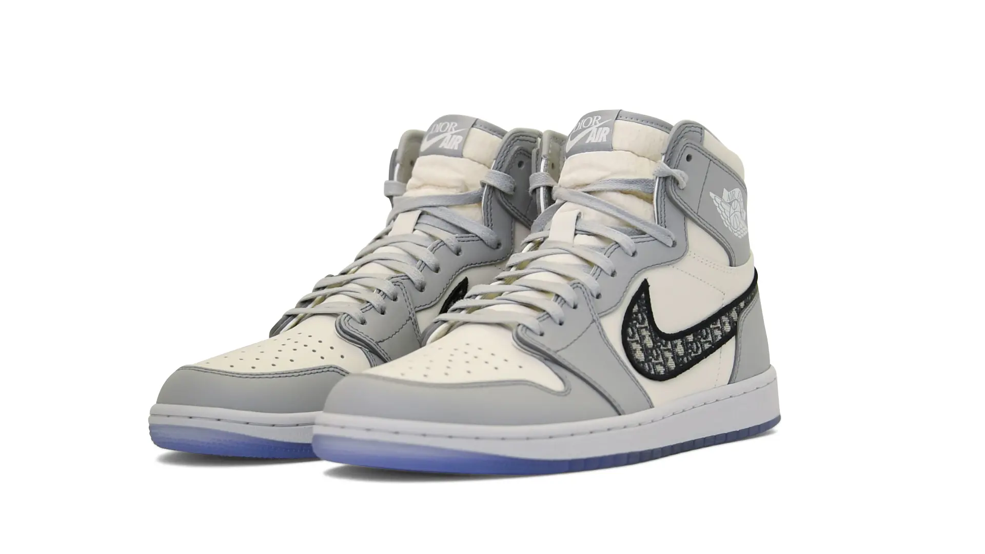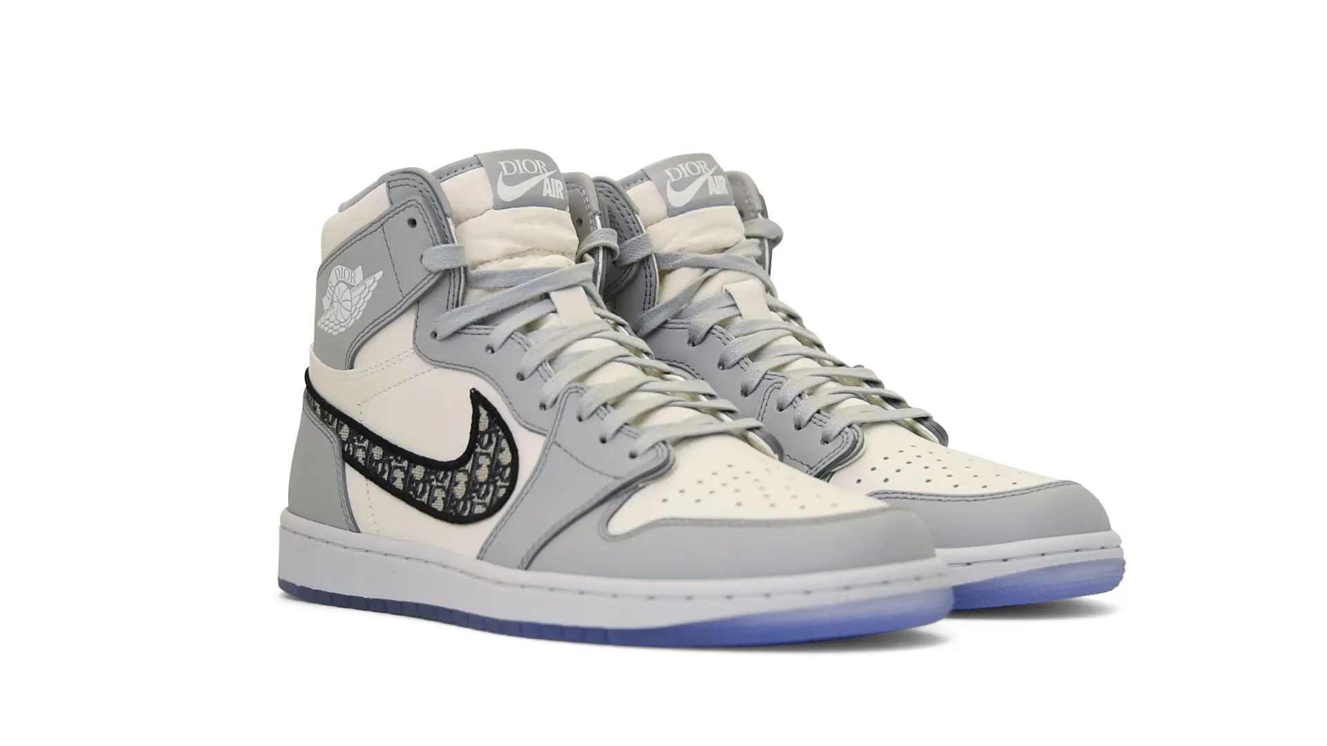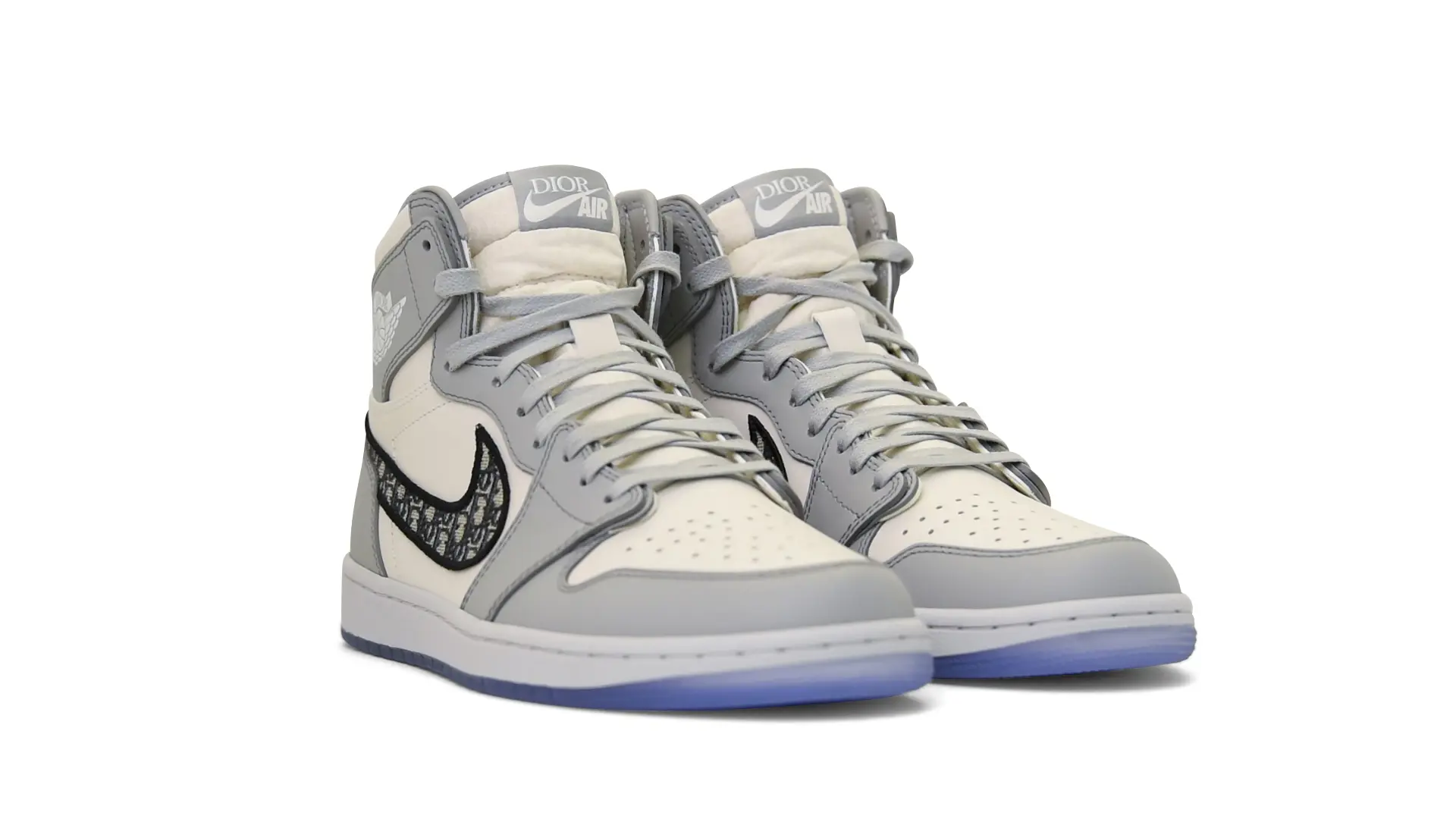 Limited to only 8500 pairs of Highs and 4700 pairs of Lows, both styles feature the Dior Gray color palette, an homage to one of Christian Dior’s most-loved hues. The shoes were handcrafted in Italy from calfskin leather and accented with Dior’s signature Oblique monogram jacquard Swooshes. Dior and Air Jordan’s iconic branding are mixed on the Wings logo, tongue labels and outsole graphics.