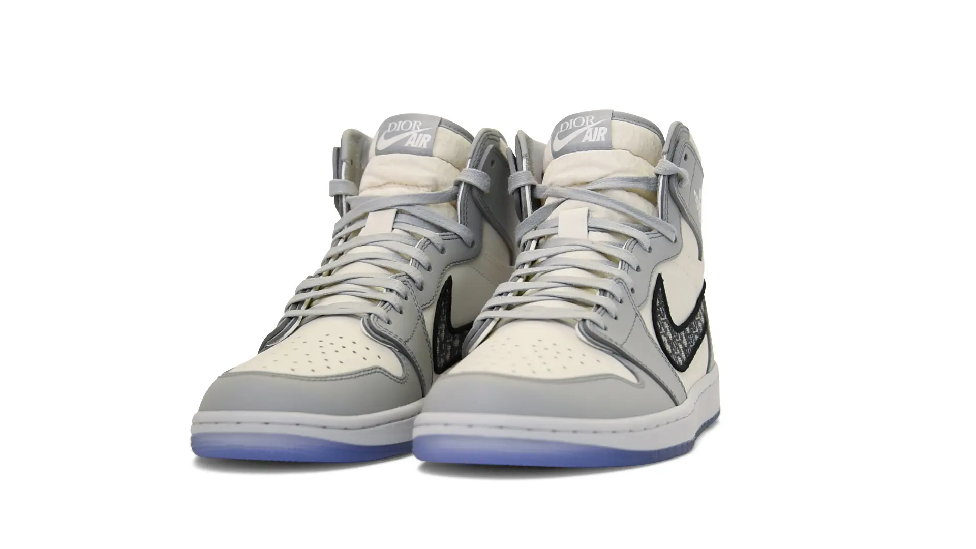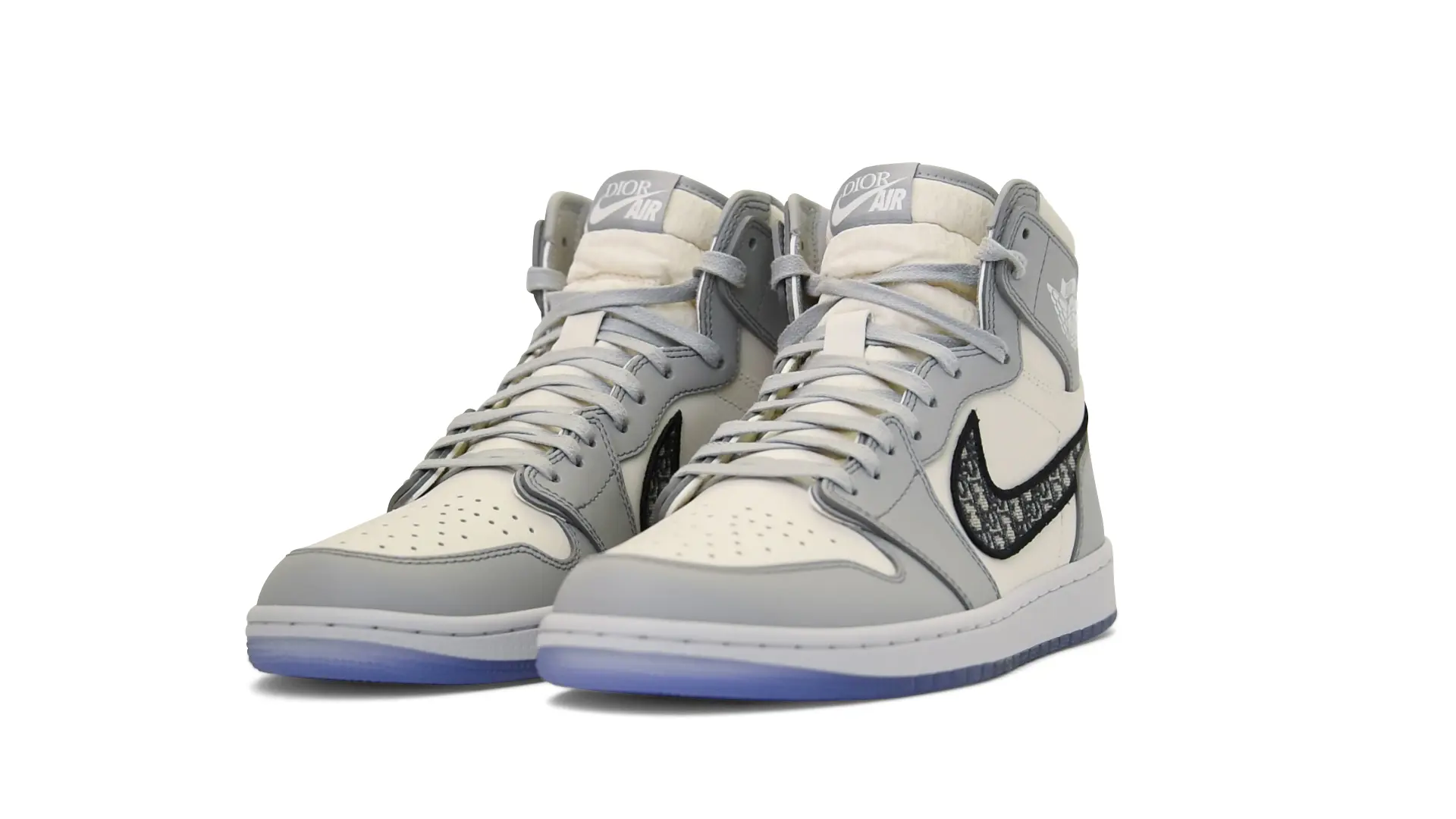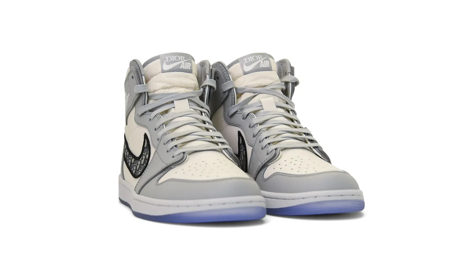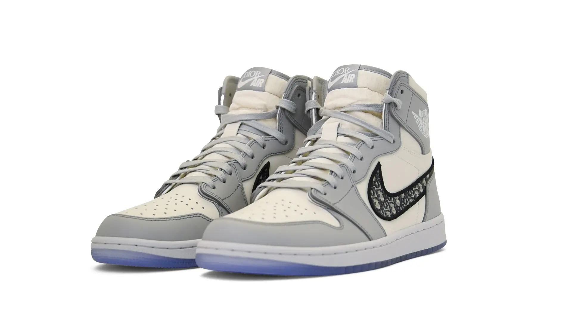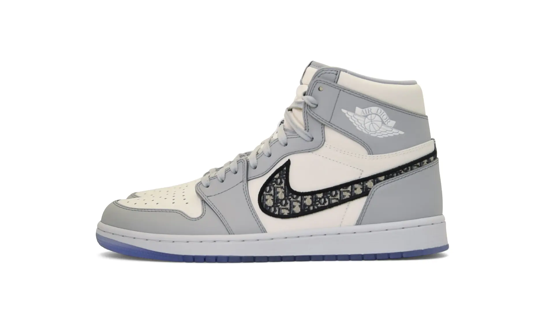 Limited to only 8500 pairs of Highs and 4700 pairs of Lows, both styles feature the Dior Gray color palette, an homage to one of Christian Dior’s most-loved hues. The shoes were handcrafted in Italy from calfskin leather and accented with Dior’s signature Oblique monogram jacquard Swooshes. Dior and Air Jordan’s iconic branding are mixed on the Wings logo, tongue labels and outsole graphics.