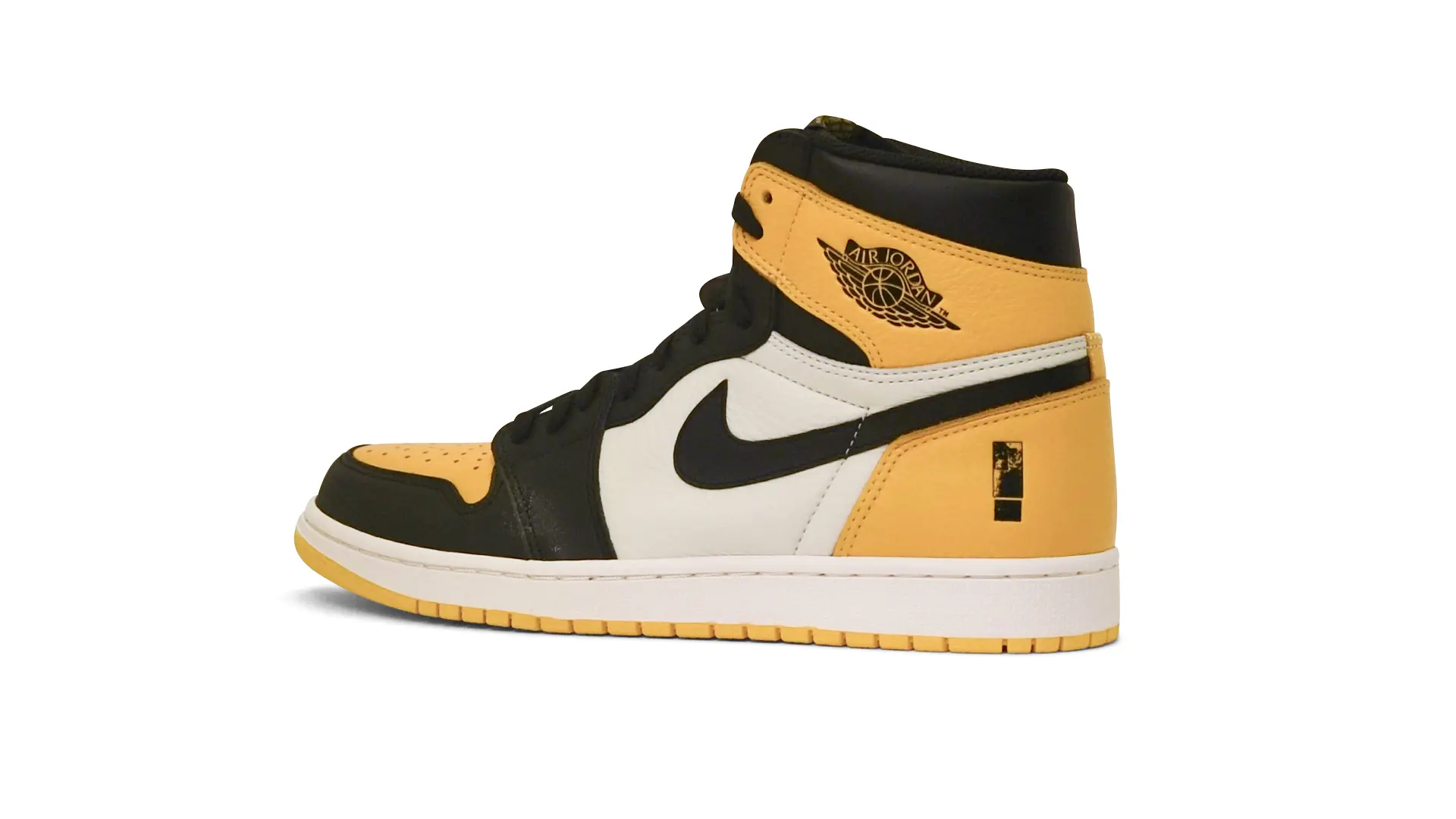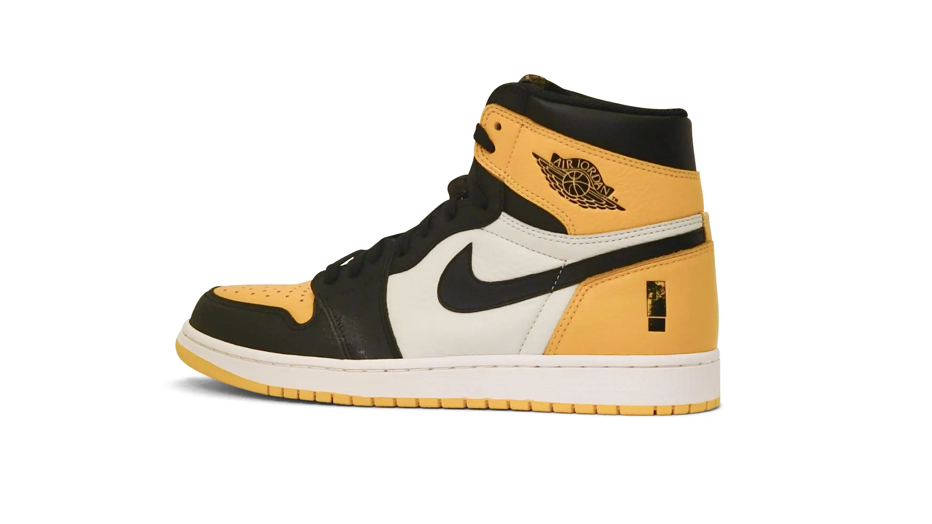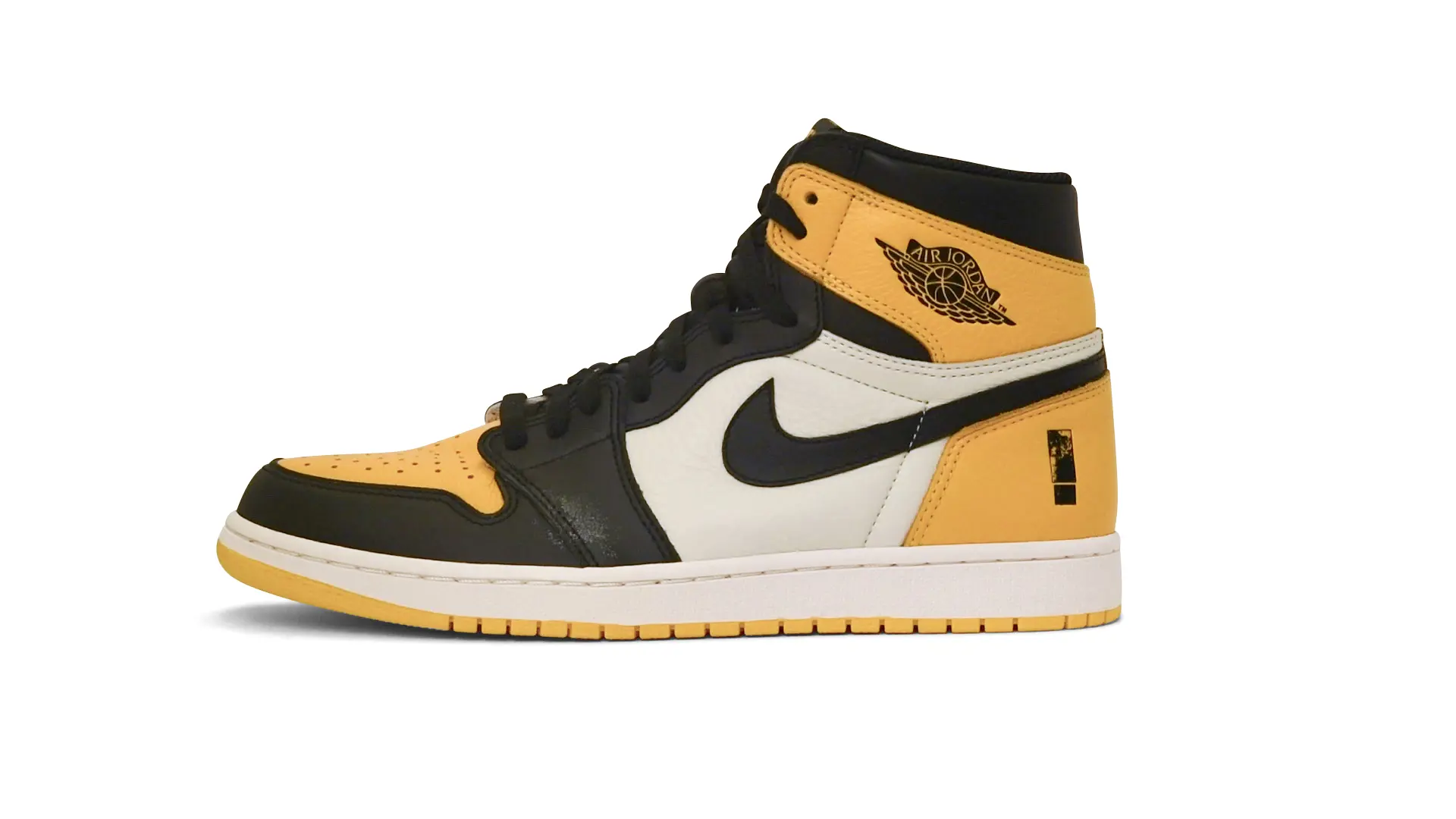 This limited edition pair was designed with yellow, black, and white colors, with the album covers’ exclamation mark featured on the heels. As the sneaker is a ‘friends and family’ drop, it is extremely rare and said to be one of a small number in existence.