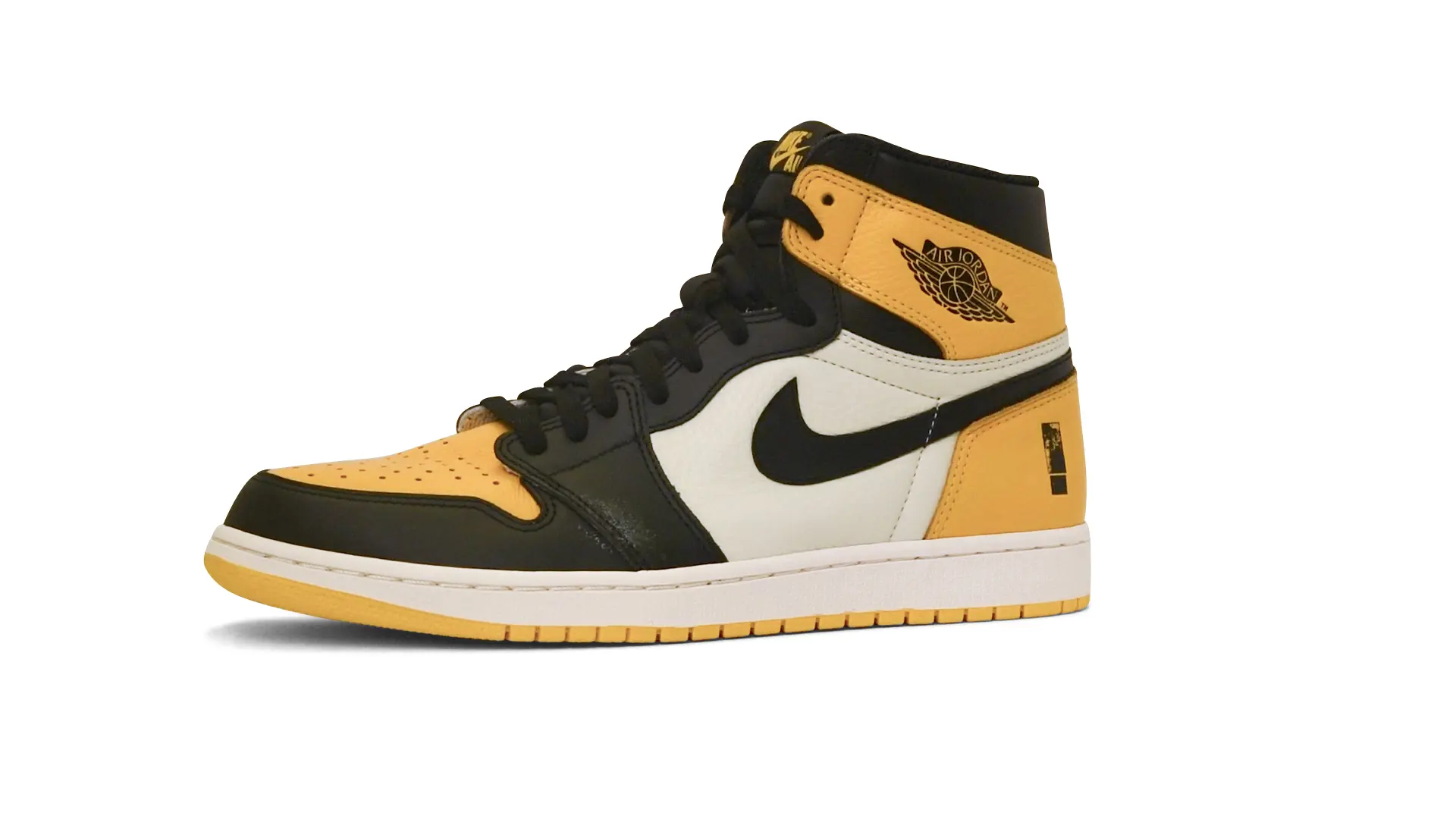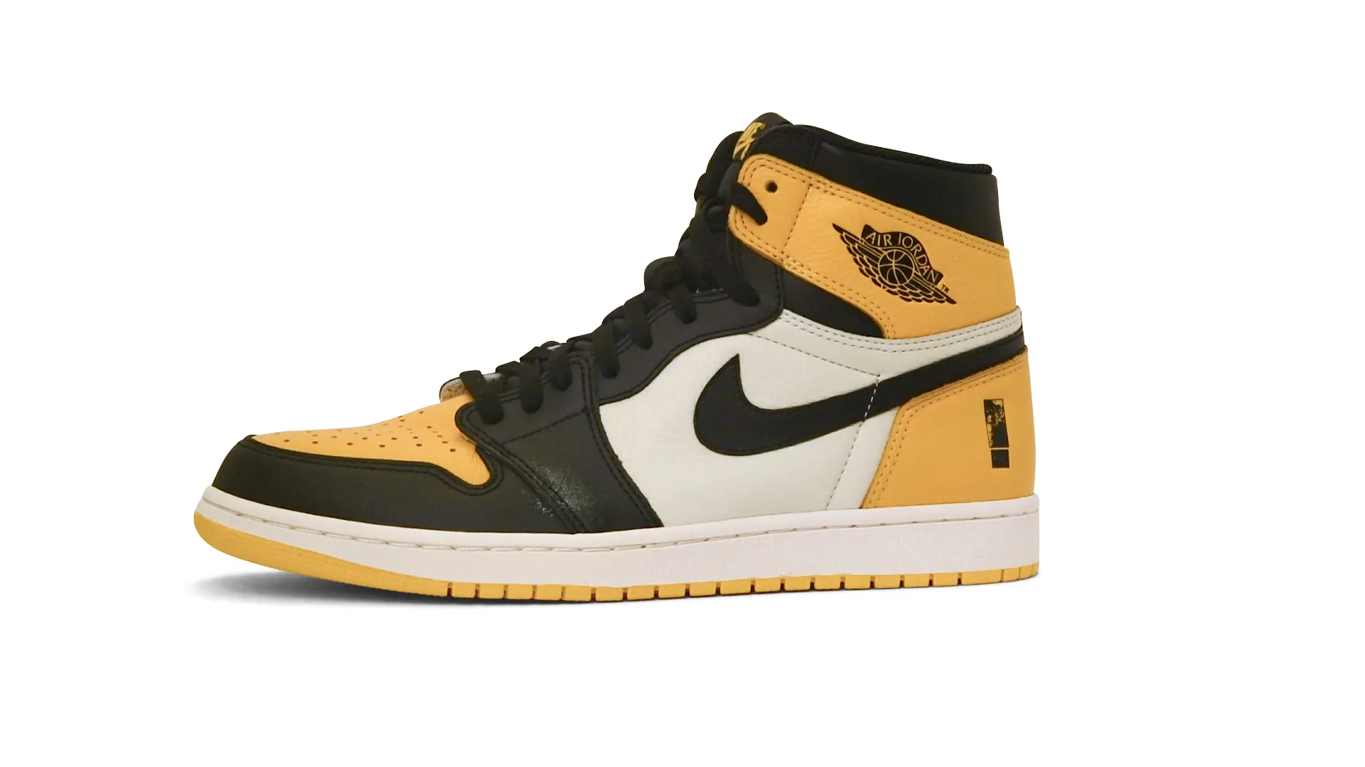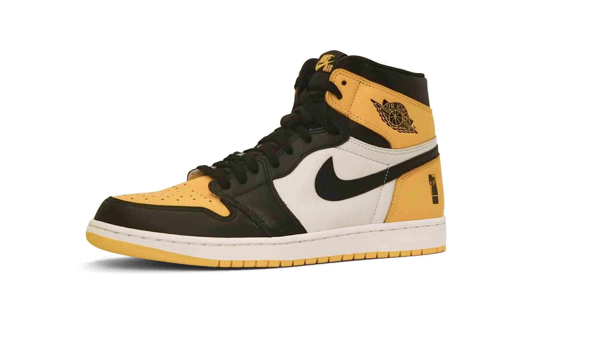 This limited edition pair was designed with yellow, black, and white colors, with the album covers’ exclamation mark featured on the heels. As the sneaker is a ‘friends and family’ drop, it is extremely rare and said to be one of a small number in existence.