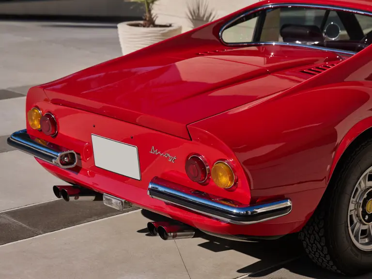 Introduced as the 206 GT, it would not be until 1969 where mass-market success was achieved in the form of the more powerful, steel-bodied 246 GT. Power from the car’s mid-mounted 2.4-litre V-6 was sent through the rear wheels and paired with a five-speed manual transmission. This well-balanced layout allowed for a spirited driving experience that, when coupled with the Dino’s timeless profile and rounded rear windscreen, turned it into a sales hit. Early ‘L-Series’ cars were offered briefly before the introduction of the ‘M-Series’ in the summer of 1970, identifiable by their five-bolt Cromodora alloy wheels and parallel moving wipers.
