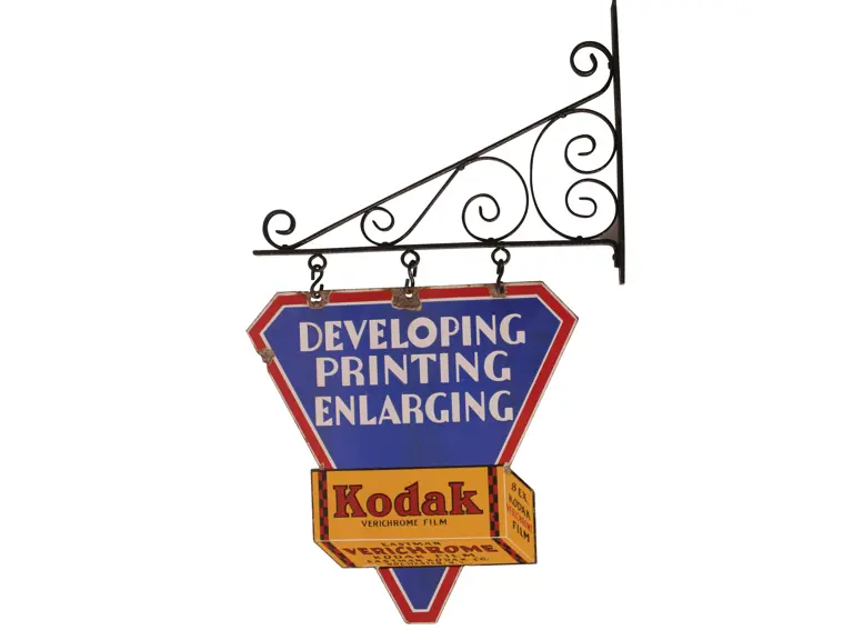 Surface is generally free of defects; image area is presentable. Edges show minor deterioration and one notable chip at top left. Notable damage to hanging holes, which show extensive wear, stretching and rust. Sides: Double-sided Authenticity: Original Material Type: Porcelain Mounting Style: Bracket Size: 17X17 RM Grade: 6 Shipping Class: 2F -----------------------
