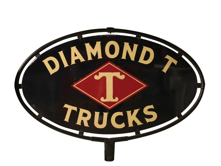 This impressive oval sign comes complete with a circular frame, ready for pole mounting. Colors, finish are bright and presentable. Yellow lettering appears to be slightly weathered. Close inspection reveals extensive surface scratching and perimeter deterioration. Sides: Double-sided Authenticity: Original Material Type: Porcelain Mounting Style: Pole Size: 77X53 RM Grade: 6+ Shipping Class: 8F -----------------------