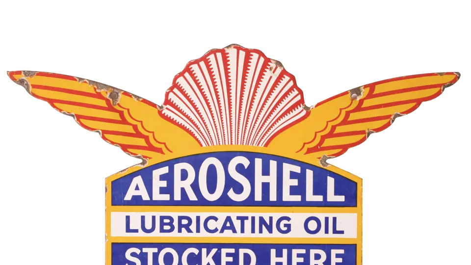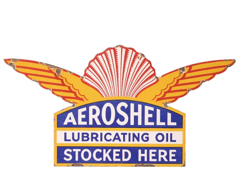This striking 1930s era die-cut has considerable eye appeal. Colors, finish are bright and glossy. Surface is largely free of flaws, but perimeter shows extensive chipping. Mounting holes also show minor wear. Overall, quite presentable. Sides: Double-sided Authenticity: Original Material Type: Porcelain Mounting Style: Hanging Size: 28X15 RM Grade: 7 Shipping Class: 3F -----------------------