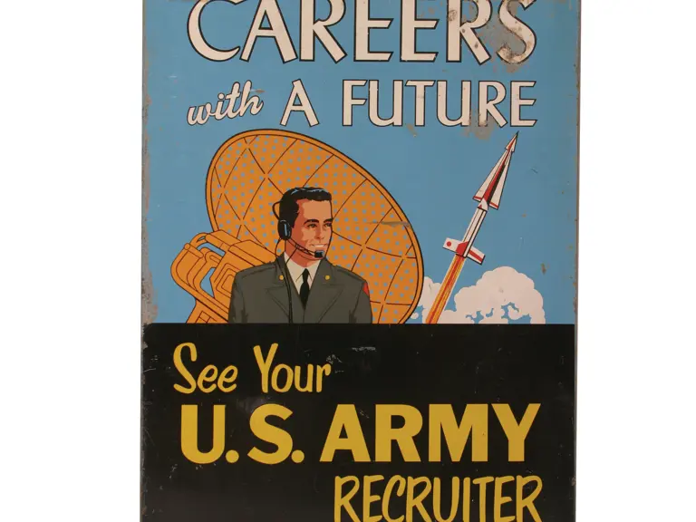 Top edge shows extensive deterioration, particularly around mounting holes. Left hand edge is also deteriorated. Image area is largely clear of imperfections, but text shows some surface deterioration and rusting. Sides: Double-sided Authenticity: Original Material Type: Tin Mounting Style: Hanging Size: 27X39 RM Grade: 6 Shipping Class: 4F -----------------------