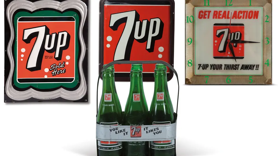 Interesting three dimensional sign from the soft drink icon. Image area nearly flawless. Edge repainted. RM Grade: 8