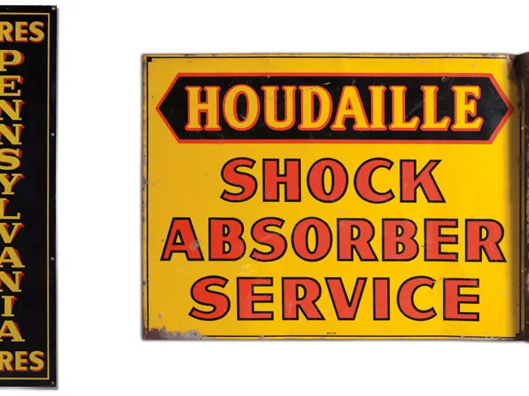 Bright finish with mostly intact gloss. Some gummy residue, extensive scratching, rusting in corners, and minor inpainting. Other side displays much more extensive rusting and is dramatically more worn. RM Grade: 6