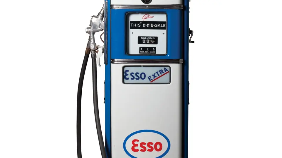Fully restored computing gas pump in classic Esso colors with reproduction globe. Model #996-R; Serial #NE985.