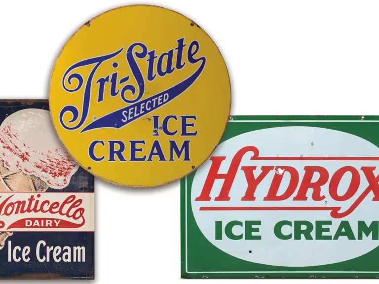 Good color contrast on an original sign. Numerous flaws in image area. Paint faded and weathered, particularly on the reverse side. Some chipping and rust along bottom edge. RM Grade: 6