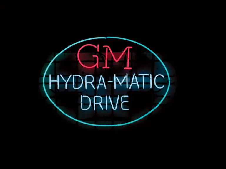 Rare piece in a very desirable size, advertising GM’s legendary transmission. Neon is mounted to metal frame for maximum effect. Colors are bright and attractive. Sign is in excellent condition with no apparent flaws. RM Grade: 8+