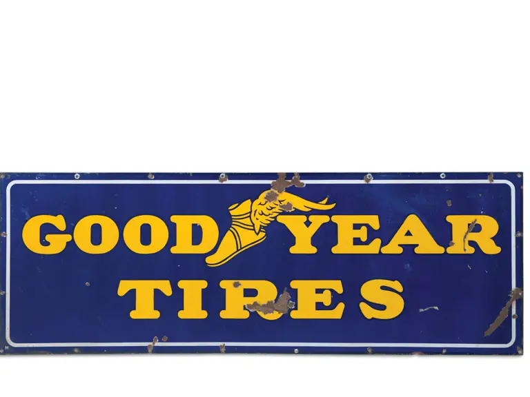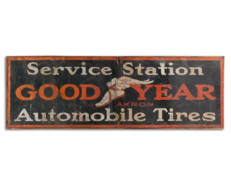 Wooden frame in two pieces. Heavy patina with extensive rip in upper-mid portion. One puncture by the "e." Extensive scratching, rust spots, scuffing, dirt, and white paint spatter. RM Grade: 5