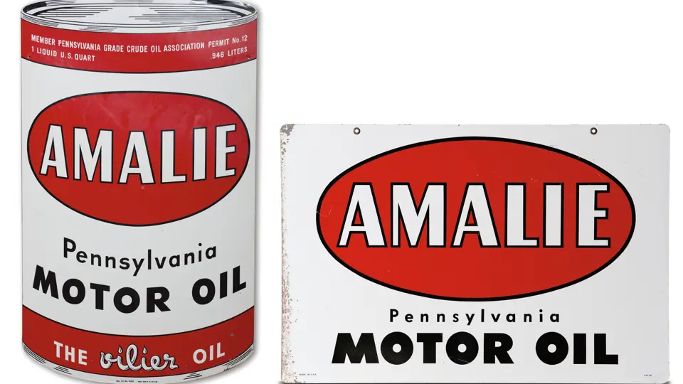 Finish displays some rusting and paint bubbling along one side; rest of sign is glossy and has great color. Some surface scratching and limited edge chipping. RM Grade: 7