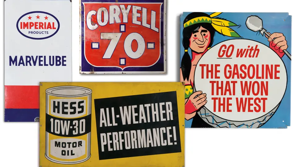 Attractive sign with a fine patina of dirt and scratches. Structurally sound but diminished visual appearance. RM Grade: 6+
