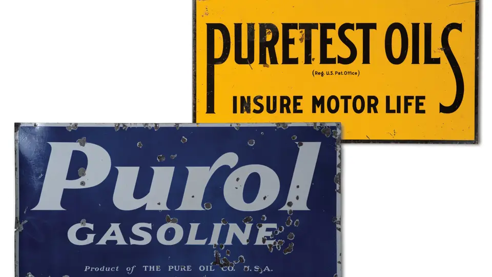 Double-sided: Metal; Flange; American Art Works, Inc.; Coshocton, Ohio; 22"x11.5".