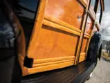 Beginning in the 1940 model year, Ford’s station wagon bodies were produced in company facilities near the forests in Iron Mountain, Michigan. The new bodies took on a much different appearance. The roofline was subtly altered, becoming more rounded at the windshield header. Panel spacing was changed, such that the lower panel became narrower, and the rear quarter panels were consolidated into one piece. The rear doors, formerly hinged at the back, “suicide” style, now swung toward the front. The spare tire, housed inside in 1938 and ’39, on the back of the driver’s seat, was returned to the tailgate, where it had been located from 1935 to 1937. DeLuxe wagons were given the option of maple or birch framing, while Standards came in maple only. Darker-colored gumwood began to be used for panels, in addition to birch, in both series. Bodies were given three coats of varnish and hand-sanded between each application.