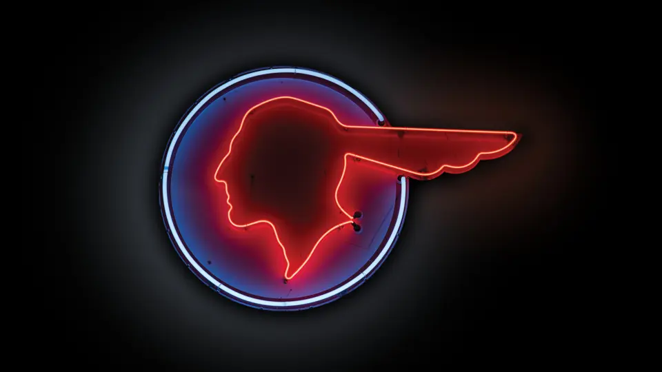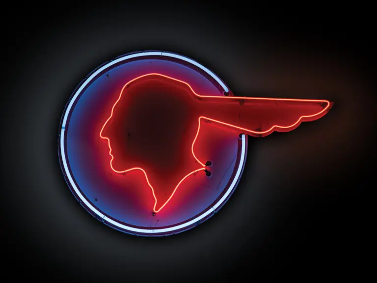 Original porcelain sign, restored. Originally neon, as presented.
