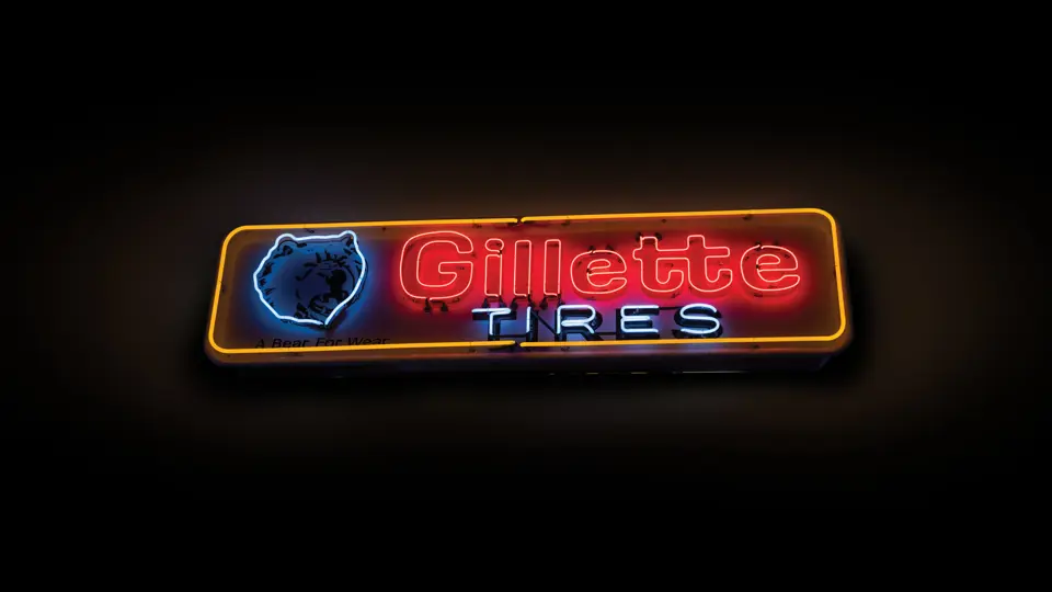Painted metal sign with rolled edges. Neon added.