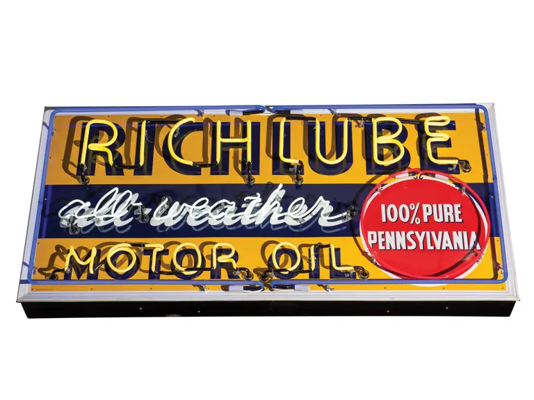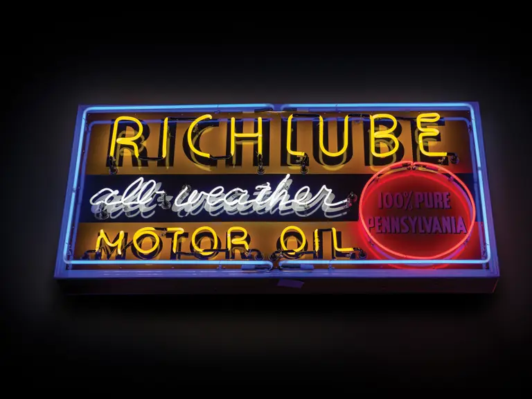 Painted metal sign with rolled edges. Neon added.