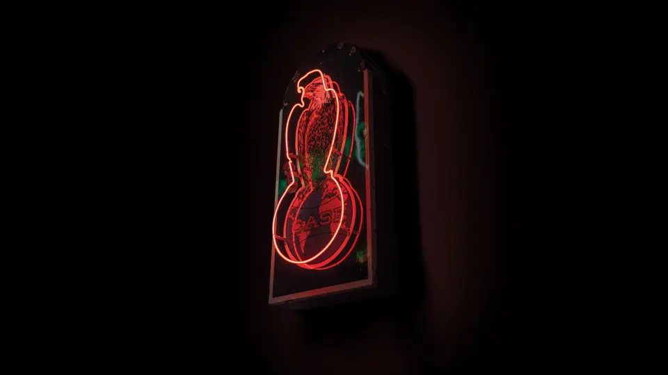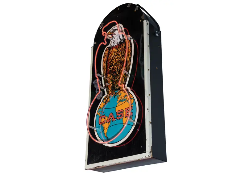 Porcelain sign with rolled edge. Originally neon, as presented.