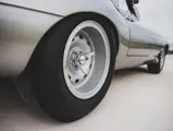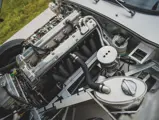 The engine is a Crosthwaite & Gardiner–built 3.8-liter inline-six with an aluminum block with steel liners, significantly reducing weight over the front wheels, and featuring a “wide-angle” aluminum head, dry-sump lubrication system, and either fuel injection or three Weber 45DCOE carburetors. Jaguar quoted over 300 horsepower and 280 foot-pounds of torque at 4,500 rpm, delivered to the rear axle via a close-ratio, fully synchronized four-speed transmission and single-plate clutch. Additional lightweight mechanical components included the radiator, oil cooler, and expansion tank for the coolant. The suspension was fitted with upgraded shock absorbers, controlling the front torsion bars and rear coil springs, while steering is handled by a stock E-Type rack-and-pinion system. Larger 12.25 in. brake discs were mounted at the front, while the perforated 15-inch-diameter wheels were correctly cast of magnesium.