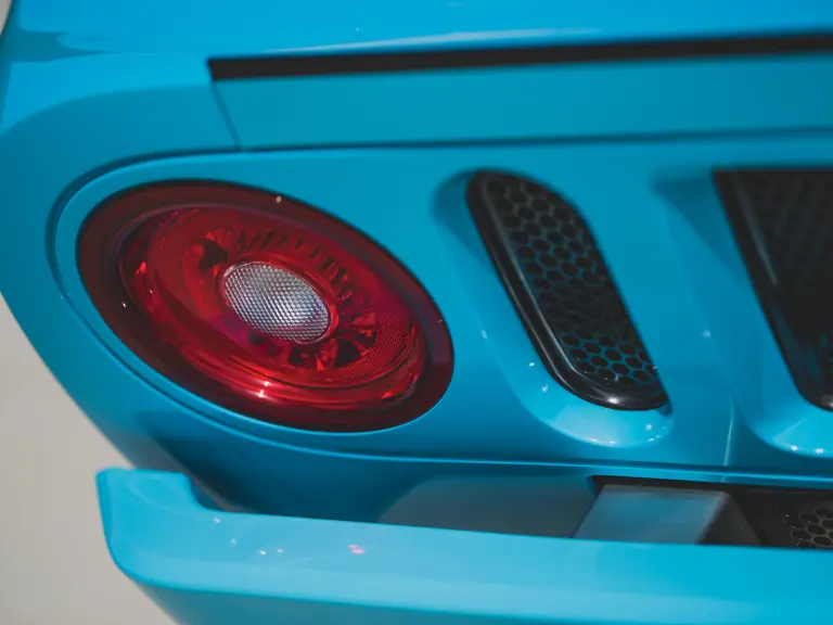 In addition to the stunning design, the Ford GT featured impressive performance. Powered by a 5.4-liter DOHC V-8 engine featuring a Lysholm twin-screw supercharger, the GT is rated at 550 hp and 500 foot-pounds of torque. The engine is paired to a Ricardo six-speed manual transmission featuring a helical limited-slip differential. This driveline allows the Ford GT to achieve a 205 mph top speed and 0–60 time of 3.3 seconds. These extraordinary performance figures put the car in competition with other supercars of the time, such as the Porsche Carrera GT and the Mercedes-McLaren SLR. For the final model year, 2006, Ford introduced a limited production Heritage edition. Finished in Heritage Blue with Epic Orange stripes, the cars featured four white roundels to which the owner could add a number of their liking. The rare livery was inspired by the double-Le Mans–winning GT40 of 1968 and 1969 which famously featured Gulf Oil sponsorship.