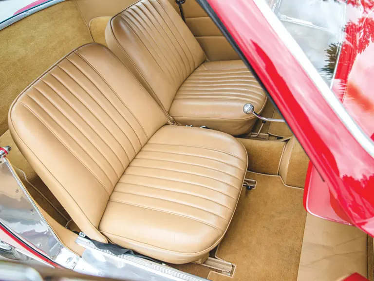 The 8V was refinished in red over a tan leather interior as part of the restoration, which was completed in 1990. Two years later, it was bought by Erich Traber, in whose Swiss collection it remained for 25 years before the current owner acquired it. Well preserved, the car is noteworthy for retaining its matching-numbers engine, as is documented in historian Tony Adriaensens’s book, Otto Vu. Many 8Vs were driven rather hard by their original owners, commonly resulting in the loss of its original power plant, but this example’s early historical documentation meant that its original engine was preserved and ultimately reunited with the car.