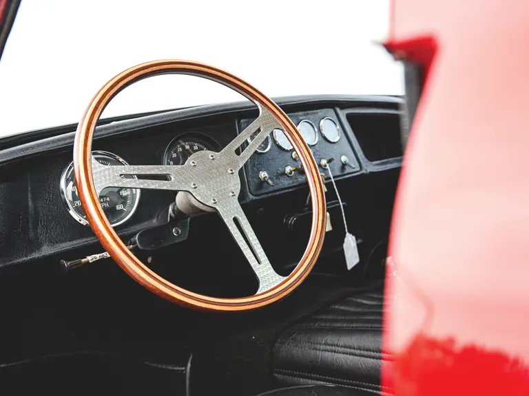 As with many Griffiths, the car has been subtly modified over the years, including locking hood latches and a tinted rear window. The seats were recovered in 2018, but the wood-rimmed steering wheel with engine-turned spokes is original. The Griffith Sprint engine is fitted with an Edelbrock aluminum intake, upgraded radiator fans, and high-performance ignition, as well as Cobra aluminum rocker covers; a stronger Salisbury differential is also fitted, as is an aluminum fuel tank. Accompanying the car are several crates of spares accumulated over the years.