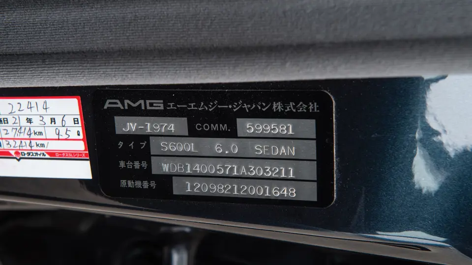Dieses Fahrzeug wurde 1996 hergestellt und im gleichen Jahr in Japan ausgeliefert. Auffallend sind die Vielzahl von AMG Details wie das Power Pack für den M120 V12-Zylinder, die AMG-spezifischen Instrumente und die AMG-Monoblockfelgen mit glanzgedrehtem Felgenrand. Diese Version mit verlängertem Radstand bietet elektrisch beheiz- und einstellbare Multikontursitze hinten mit zusätzlichen Fußstützen. Dieses Fahrzeug verblieb bis 2015 in Japan, bevor es nach Deutschland exportiert wurde, wo es der einliefernde Besitzer später im gleichen Jahr erwarb.