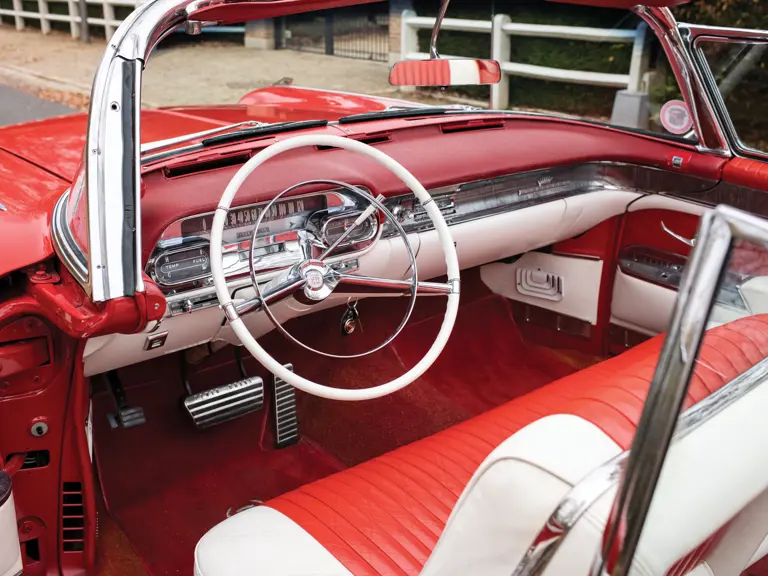 Einer Kopie der originalen Fertigungsunterlagen zufolge wurde dieser Eldorado zusätzlich zur serienmäßigen Ausstattung mit Servolenkung und -bremsen sowie elektrischen Fensterhebern mit Sonderausstattungen wie einer elektrischen Zentralverriegelung, Klimaanlage E-Z Eye Glas und dem Lichtsensor Autronic Eye ausgestattet. Ein UKW-MW Radio in zeitgenössischer Optik findet sich in seinem originalen Platz im Armaturenbrett. Dieser Cadillac repräsentiert das Beste des amerikanischen Automobilbaus der 50er Jahre.