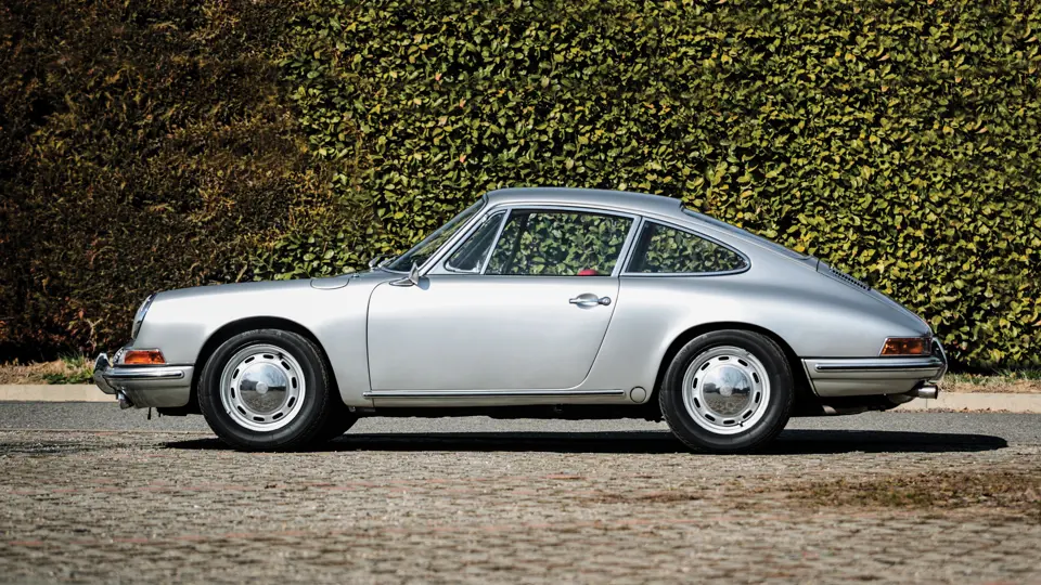 Widely recognized as one of the most iconic sports cars in the history of the automobile, the Porsche 911 debuted in September 1963 at the Frankfurt Auto Show. First called the 901, the new model was renamed the 911 when Peugeot claimed the worldwide trademark rights to all three-digit car model designations with a ‘0’ as the middle number. Advanced in comparison to the Volkswagen-derived Porsche 356 engine, the newly designed Porsche 901/911 power unit was a two-litre, air-cooled flat-six that produced 130 bhp. Acceleration from 0–100 km/h was a brisk 8.3 seconds.