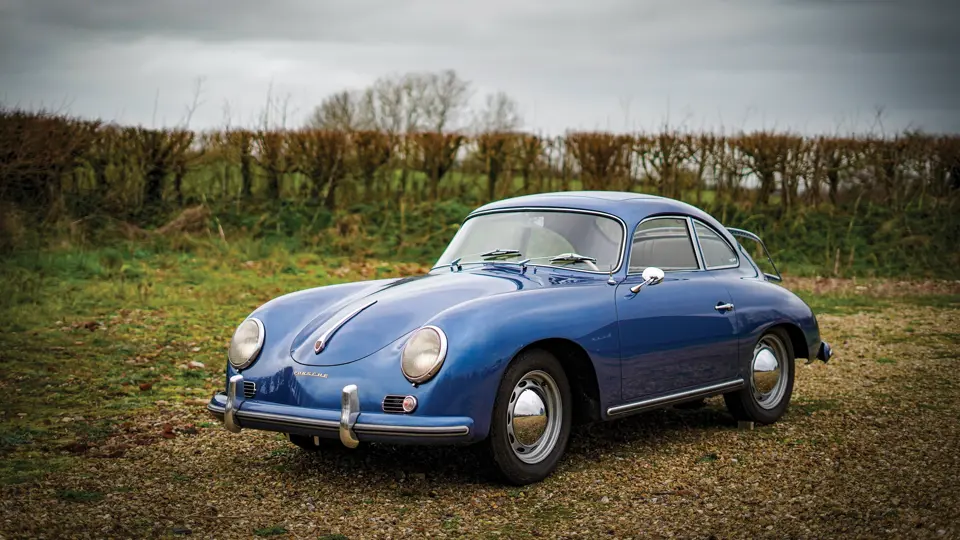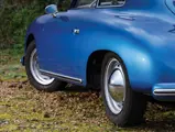 Dieser Wagen verließ die Porsche Werkshallen in Zuffenhausen im Juli 1956 auf Bestellung des ersten Besitzers Maynard Munger jr, der die Farbkombination aquamarinblau mit grauem Vinyl spezifiziert hatte. Als Extra waren ein Blaupunkt Radio mit Antenne und ein Gepäckträger geordert worden. Darüber hinaus verfügt dieses Modell über das seltene Schiebedach mit der pfeilförmigen Front, das 1954 ab Werk bestellt werden konnte. Diese Schiebedächer von Golde verfügten an ihrer Vorderkante über eine pfeilförmige Linienführung, die bei ihrer Einführung die Form der geknickten Frontscheibe der 356er Modelle wiedergeben sollten. Und obwohl der 356 A nicht mehr über diese Form der Scheibe verfügte, wurden die Fahrzeuge noch immer mit diesen Dächern ausgerüstet. Dieses Extra änderte sich erst 1957, was diesen 1956er 356 zu einem der letzten so ausgestatteten Porsche macht. Über die frühe Historie dieses Wagens ist nur wenig bekannt. 2001 wurde das blaue Coupé aus den USA nach Großbritannien importiert, wo es bis 2019 trocken eingelagert wurde. Es ist wichtig darauf hinzuweisen, dass dieser nun überholte Wagen nicht mehr über seinen Originalmotor verfügt, sondern mit einem korrekten 1600er Motor ausgestattet ist. Dieses in wunderschöner Farbkombination präsentierte 356 Coupé bekommt Aufmerksamkeit, wo immer es auftaucht.
