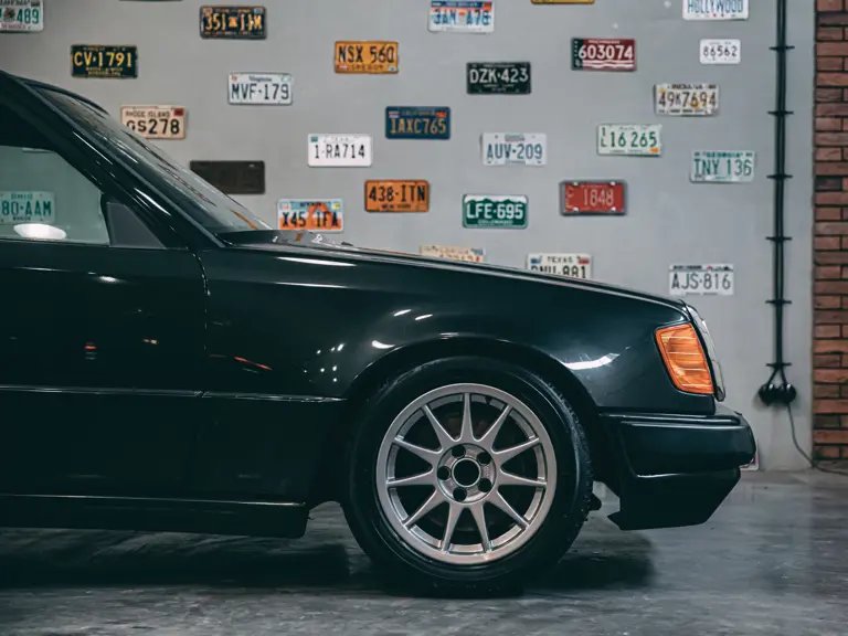 Das hier angebotene Fahrzeug lediglich ein Einzelstück zu nennen, käme ihm sicher nicht gerecht. Da Hartge so eng mit Produkten der Marke BMW verbunden ist, geht dieses Auto gegen den Strom und wurde in der Tat so nur einmal gebaut. Dieser Hartge F1 begann sein Leben als ein 300 E der Generation W124 mit 190 PS. Aber nur, bis ihn die Hartge-Brüder in die Finger bekamen. Motor und Getriebe wurden ausgebaut, und hinein kam der BMW M88 Motor, bekannt aus dem M1, M635 CSi oder dem ersten M5 der Generation E28. Hier wurde der Motor leicht von 3.459 cm³. Das Handschaltgetriebe stammte von einem 6er BMW E24, das Fahrwerk von Bilstein. Das Ergebnis dieses Umbaus ohne Rücksicht auf Kosten war ein unvergleichliches Fahrzeug mit schockierenden Fahrleistungen. Dieser W124 mit 330 BMW-PS wurde schnell zu einem Liebling der Automobilpresse, was aus zahlreichen, in den Unterlagen befindlichen Artikeln hervorgeht. Der vielleicht ultimative Hartge präsentiert sich hier unrestauriert als wahre Gelegenheit für Fans der Marke.