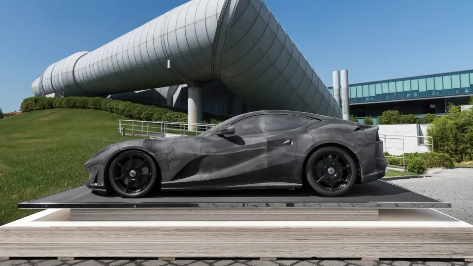 This original 812 Superfast wind tunnel model is handmade with carbon fibre and other prototypal material. This is the original 1:2 scale aerodynamic model used during the different stages of development, including to test and improve the computational fluid dynamics results inside the wind tunnel. This model also maintains its original modularity used to optimize the aerodynamics of different areas of the Superfast.