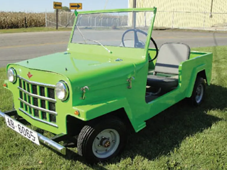 This vehicle, made in Spain with steel body construction, was patterned after the American Jeep. Infantry captain Frederico Saldana built a series of extremely compact, minimalist automobiles in 1950 near Barcelona. The first attempt at micro transportation was called the Kapiscooter, which was followed by the JIP. Very few JIPs were produced and fewer survive. This JIP’s 8.5-hp pull-start engine was sourced from Hispano-Villiers; backed by a three-speed transmission, the little car can achieve a 40-mph top speed.