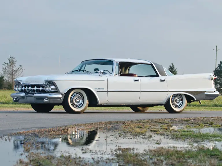 This was the third year Imperial would receive its own platform as an independent brand and were thought by many to be the most beautiful of Virgil Exner’s Forward Look design. The new, massive grille and bumper design conveyed a feel of simple elegance and was advertised at the time as being fresh, modern and functional. This Ivory White Imperial Crown features convenience and performance elements such as power steering and brakes, dual exhaust, outside rearview mirror, vanity mirror, six-way power seat, electric clock and windshield washer. Power is delivered by a 6.8-liter V-8 engine with pushbutton Torqueflite transmission.