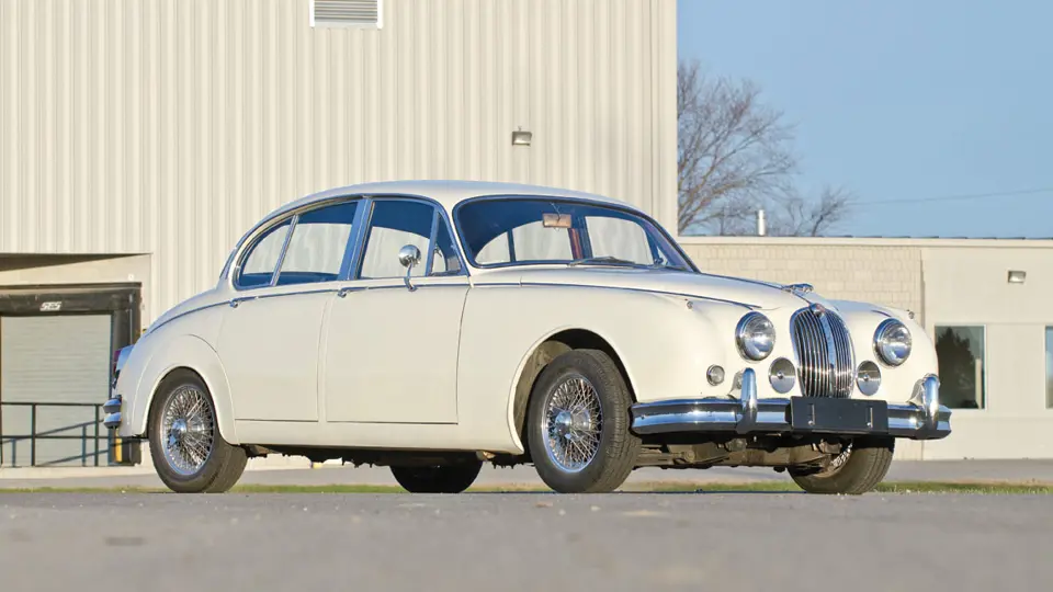 The glass on this Old English White 1960 Jaguar is original, and the chrome has been refinished or replaced as needed. Under the hood, the 3.8-liter engine was thoroughly checked and confirmed to be in top operating condition. In 2007, a GM four-speed automatic transmission replaced the original unit. The wiring harness was also replaced, and an alternator with a built-in regulator was installed, along with a new GM-type starter. Beautiful in its presentation and impressive in its performance, this 1960 Mk II is a wonderful Jaguar that will surely please the most discerning enthusiast and sport sedan devotee.