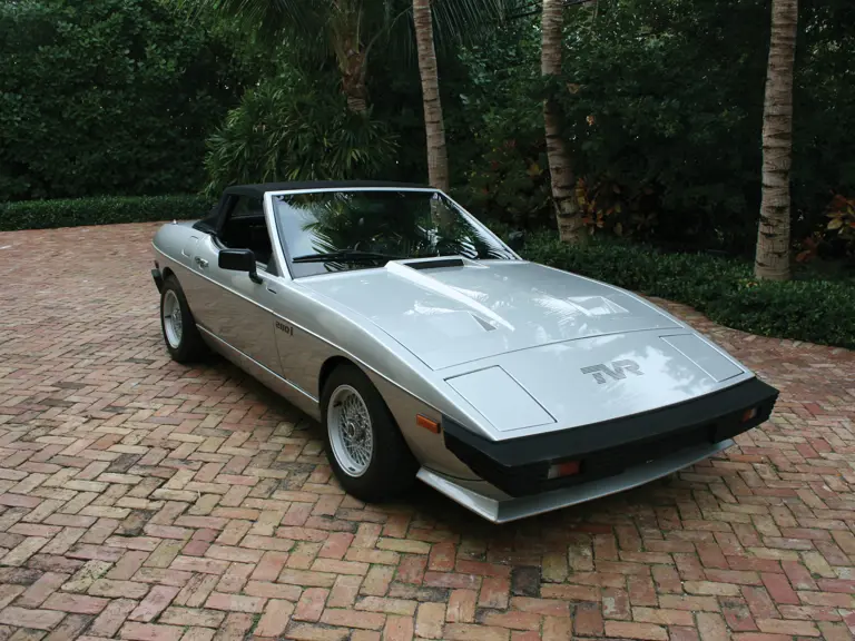 This TVR is powered by a 170-cid, 160-hp OHV V-6 Ford "Cologne" engine, equipped with Bosch fuel injection and mated to a Ford four-speed transmission. Production of the 280i essentially ended in 1987, the same year TVR left the U.S. market for good, although another five examples trickled out of the factory the following year. Total production of the V-6 wedge shaped cars reached just 1,167, 862 of which were convertibles. Out of this small number, it's estimated that 400 to 500 cars reached the United States.