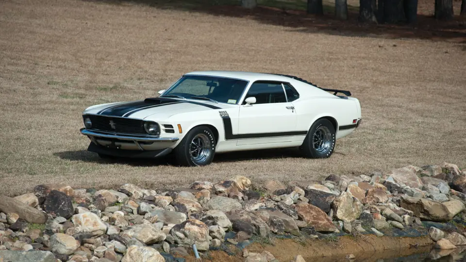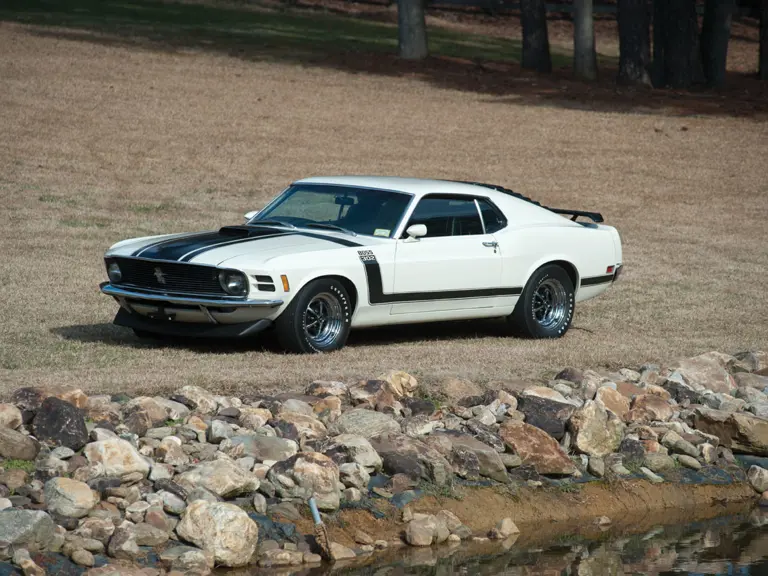 Discovered in deteriorating condition in the early 1990s; the automobile offered here is a factory air-conditioned car that was destined for an upper-echelon Ford executive, which makes it unique to Boss 302 production. The concours quality renewal of this Wimbledon White SportsRoof with black striping and interior won the Best of Show award the first time displayed, beating 120 other Mustangs at SAAC-20 in Atlanta, Georgia.